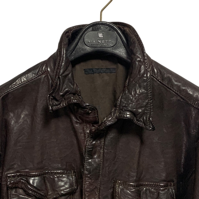 "Zegna" Military Leather Jacket レザー ミリタリー メタル ダブルジップ サイドゴム カーキ デザイナーズ