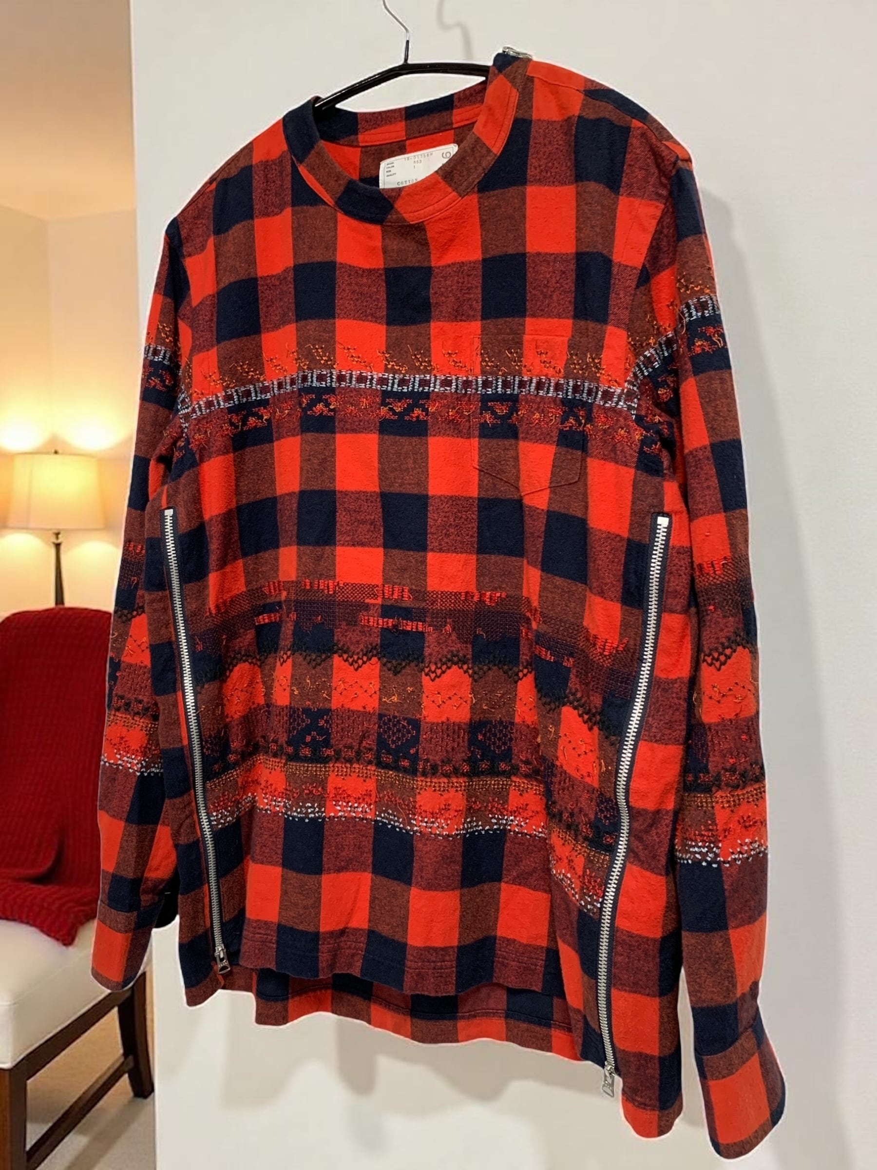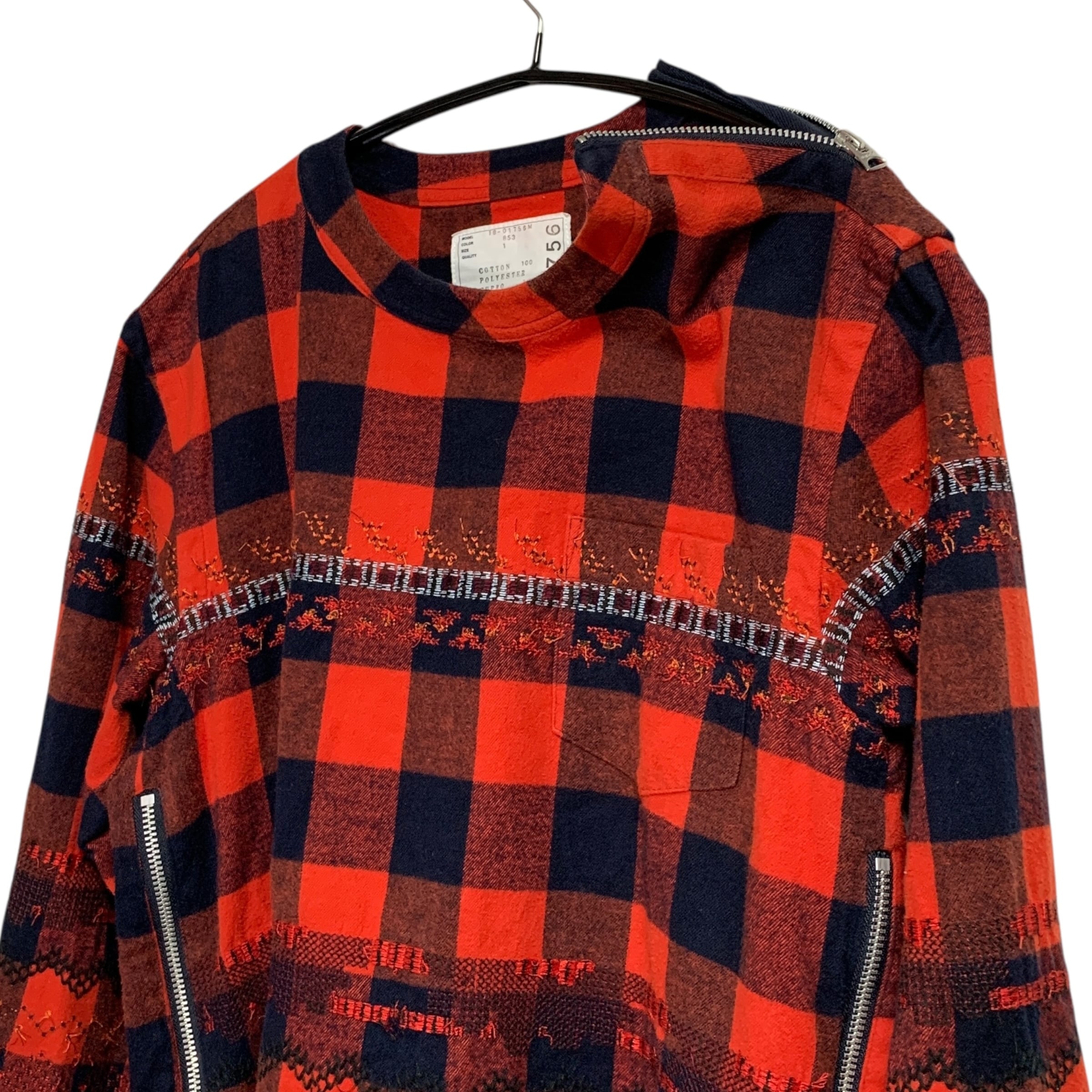 "Sacai" Side-Zip Checked Shirt (Embroidered)