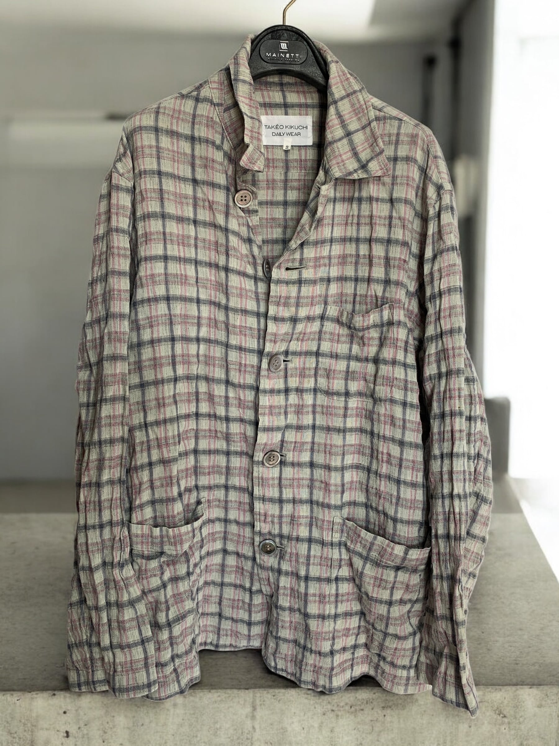 "Takeo Kikuchi Daily Wear" Shrunk Pastel Checked Shirt シュリンク加工 パステルカラー チェックシャツ タケオキクチ 日本製
