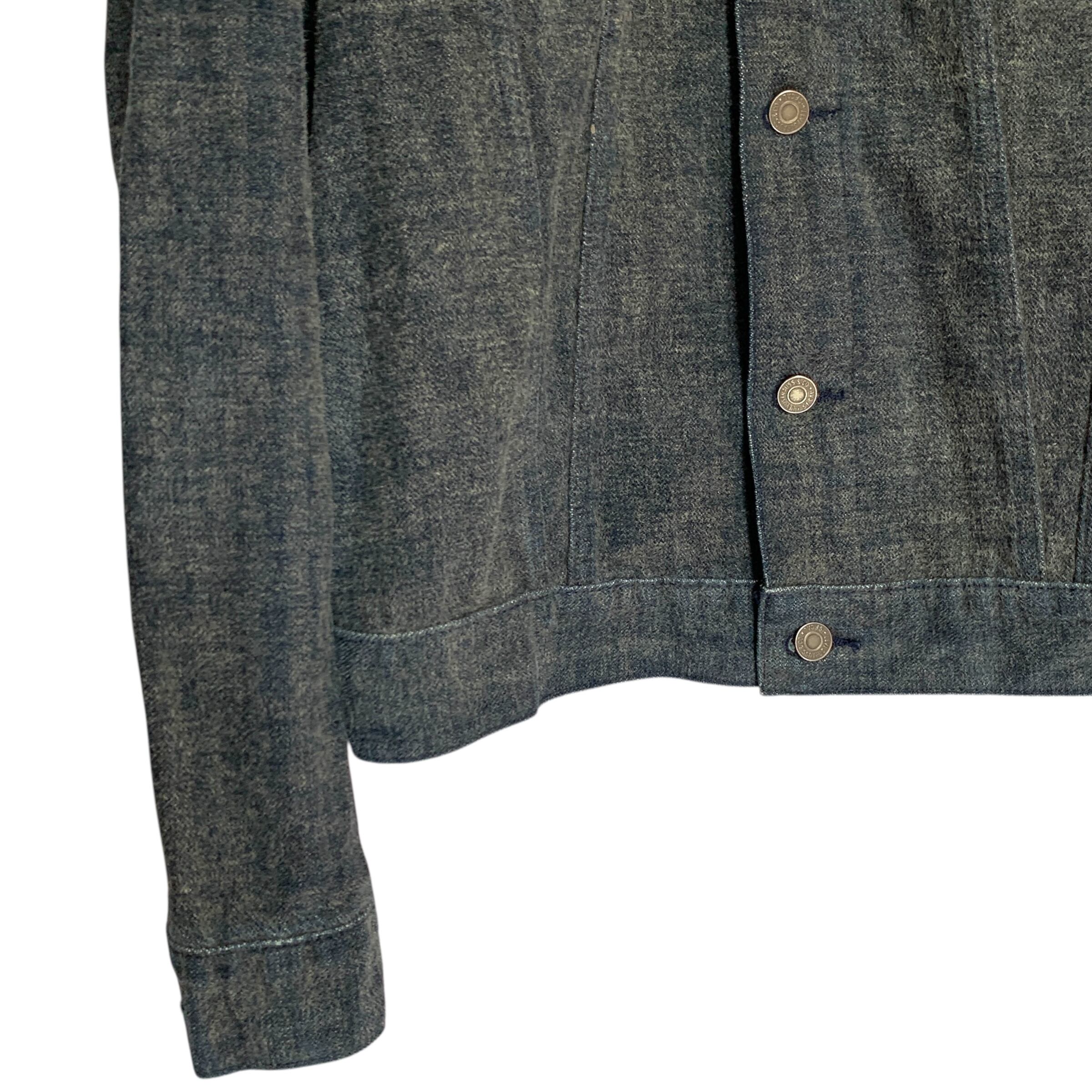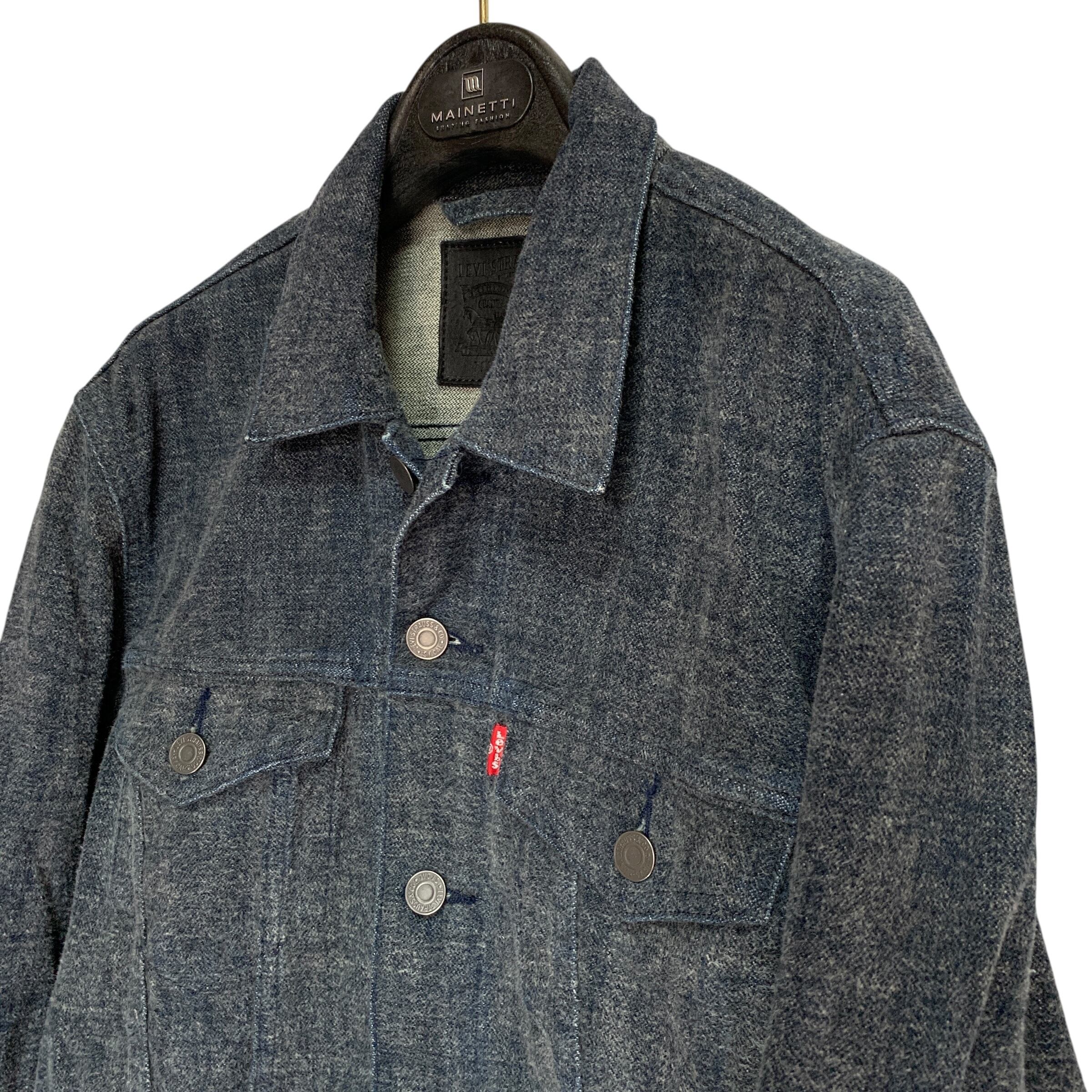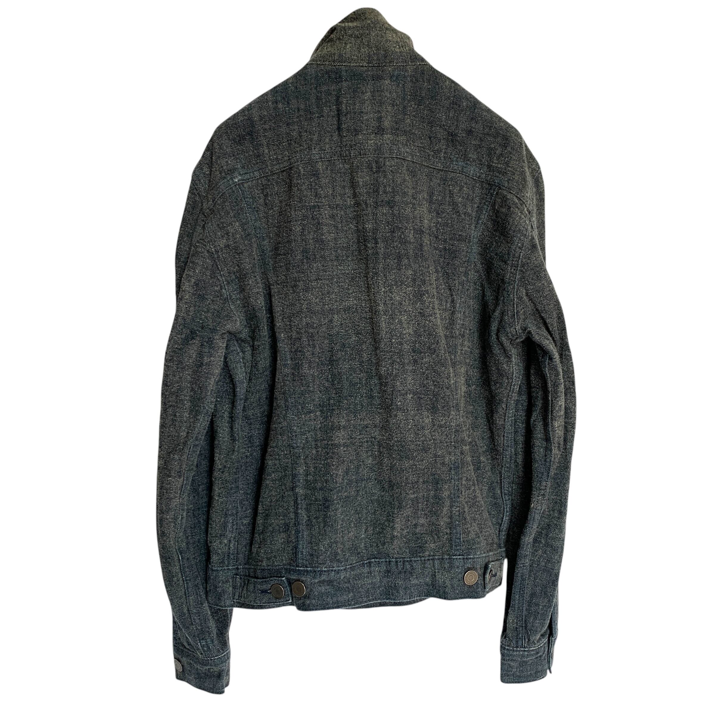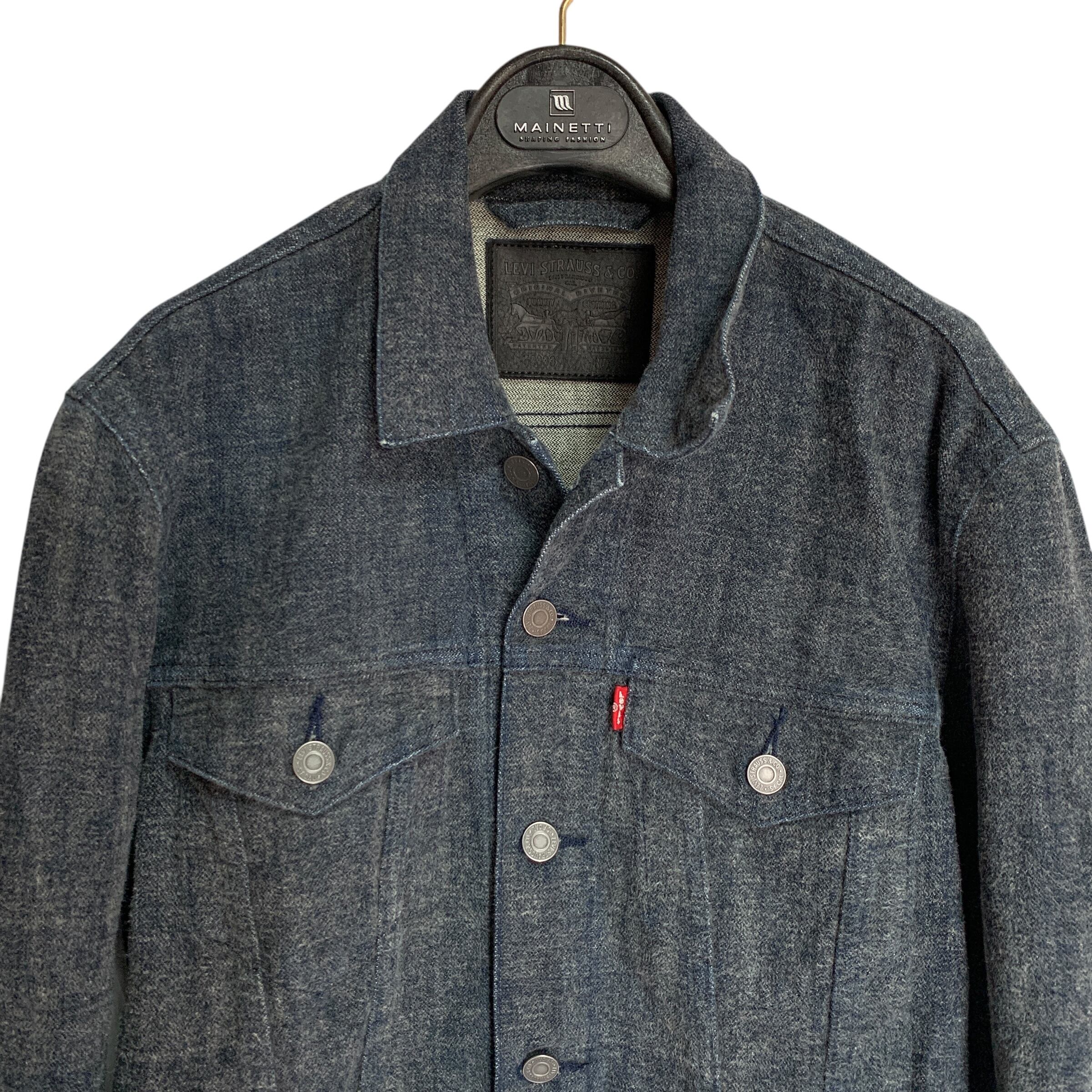 "Levi Strauss &Co." Denim Jacket 毛足 光変化 リーバ0イス デニムジャケット モード 黒革パッチ ダークウェア
