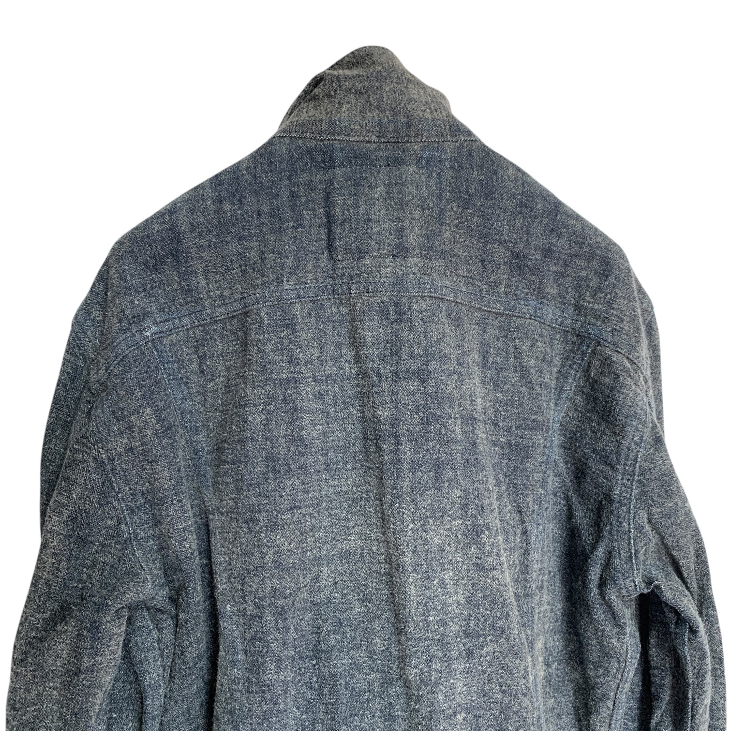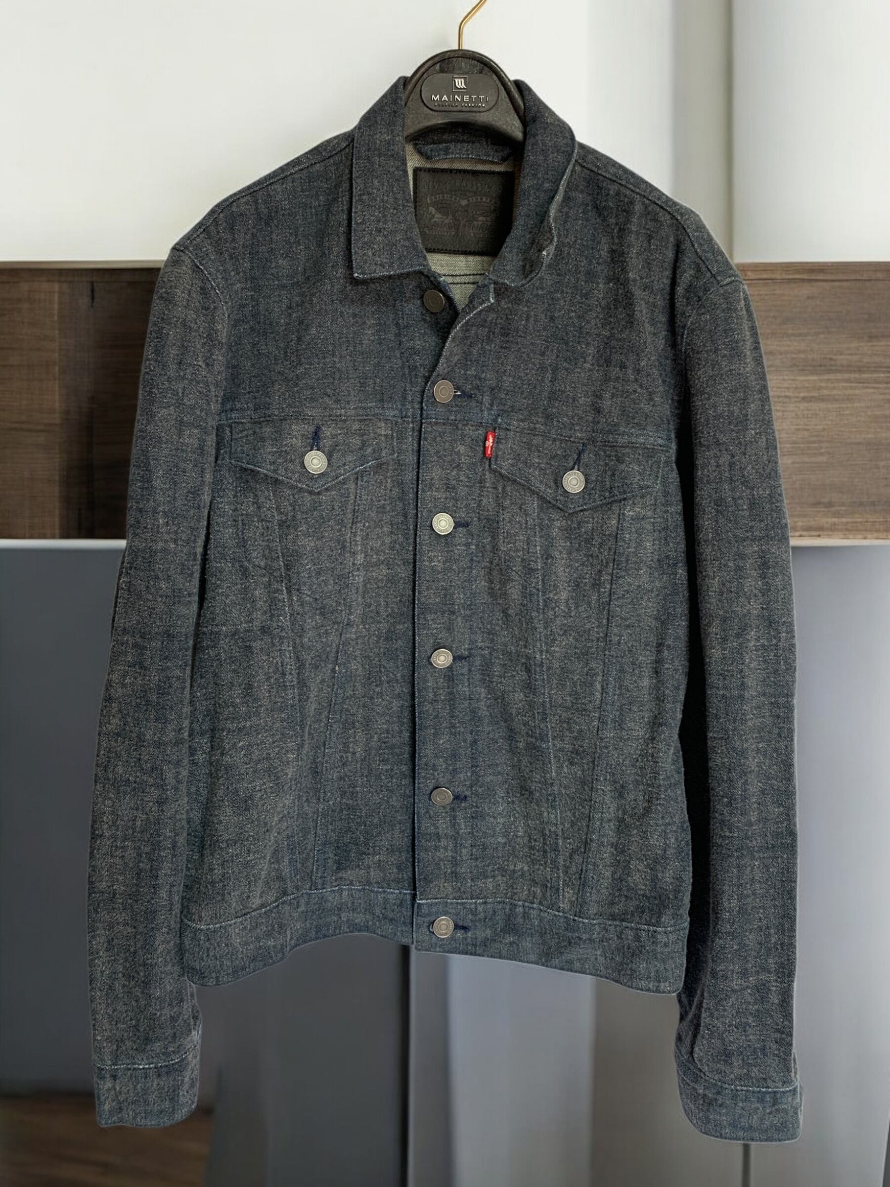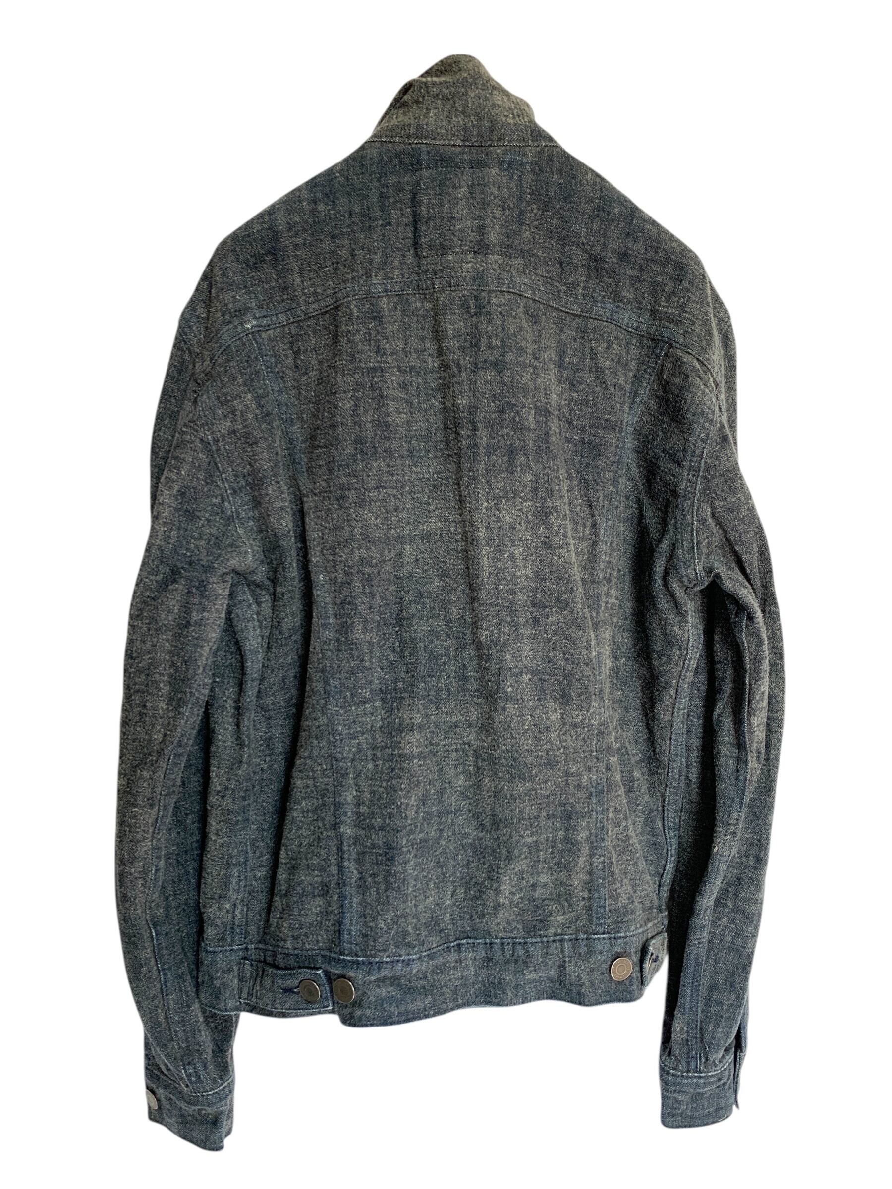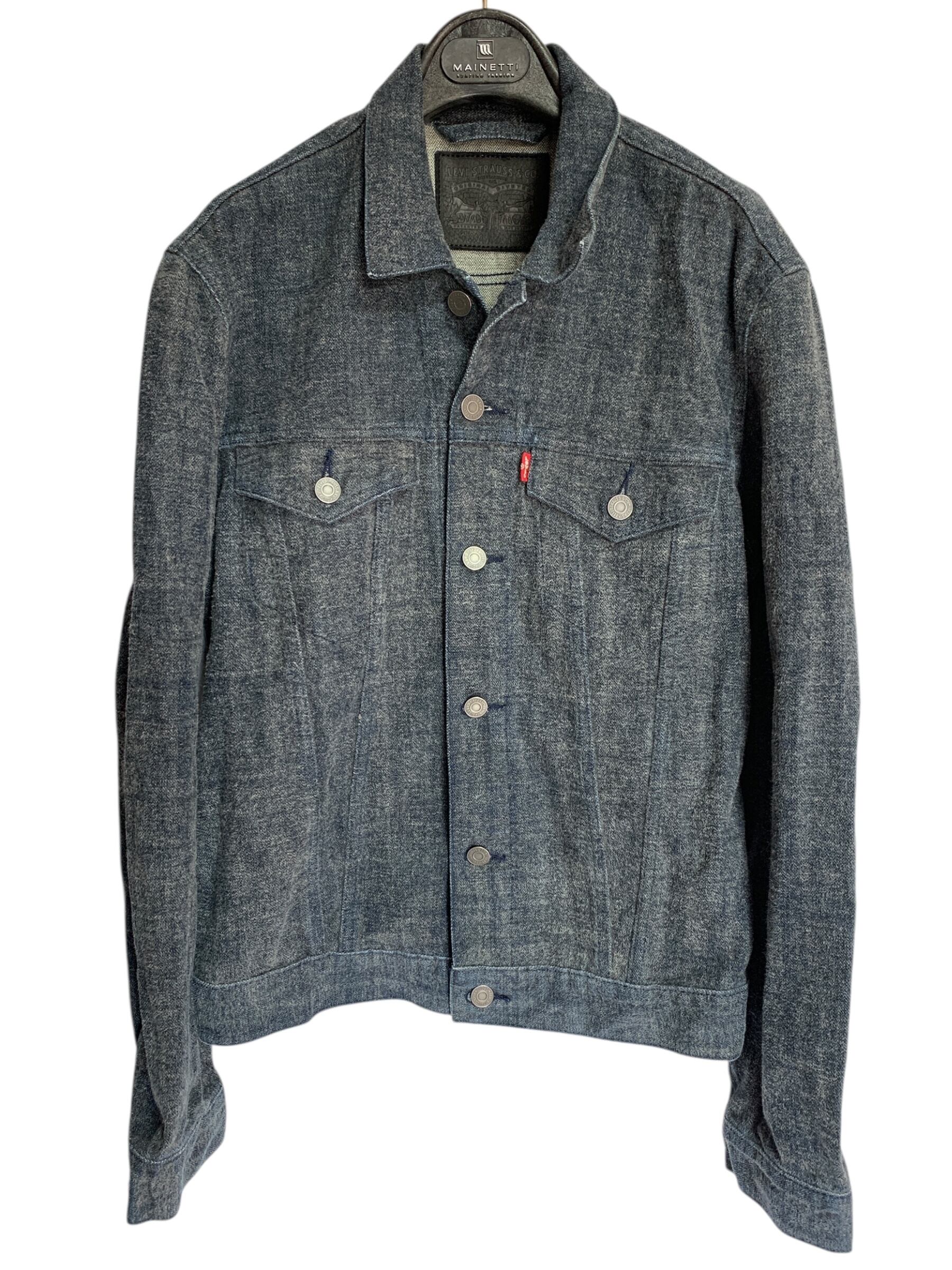 "Levi Strauss &Co." Denim Jacket 毛足 光変化 リーバ0イス デニムジャケット モード 黒革パッチ ダークウェア