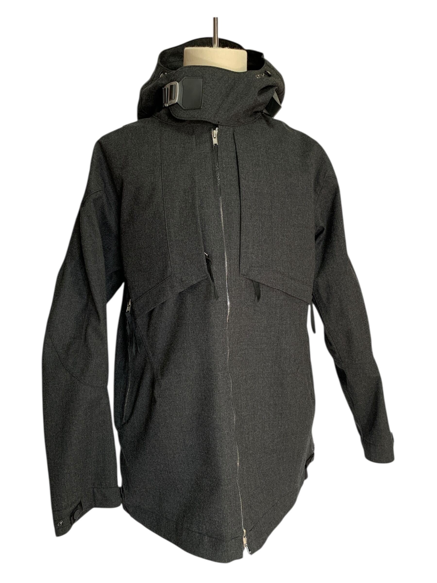 "Polewards" 撥水ウール × Schoeller / Oversized Tech Jacket バックル マウンテンパーカー ダブルジップ Schoeller社 9.6万 テックジャケット オーバーサイズ