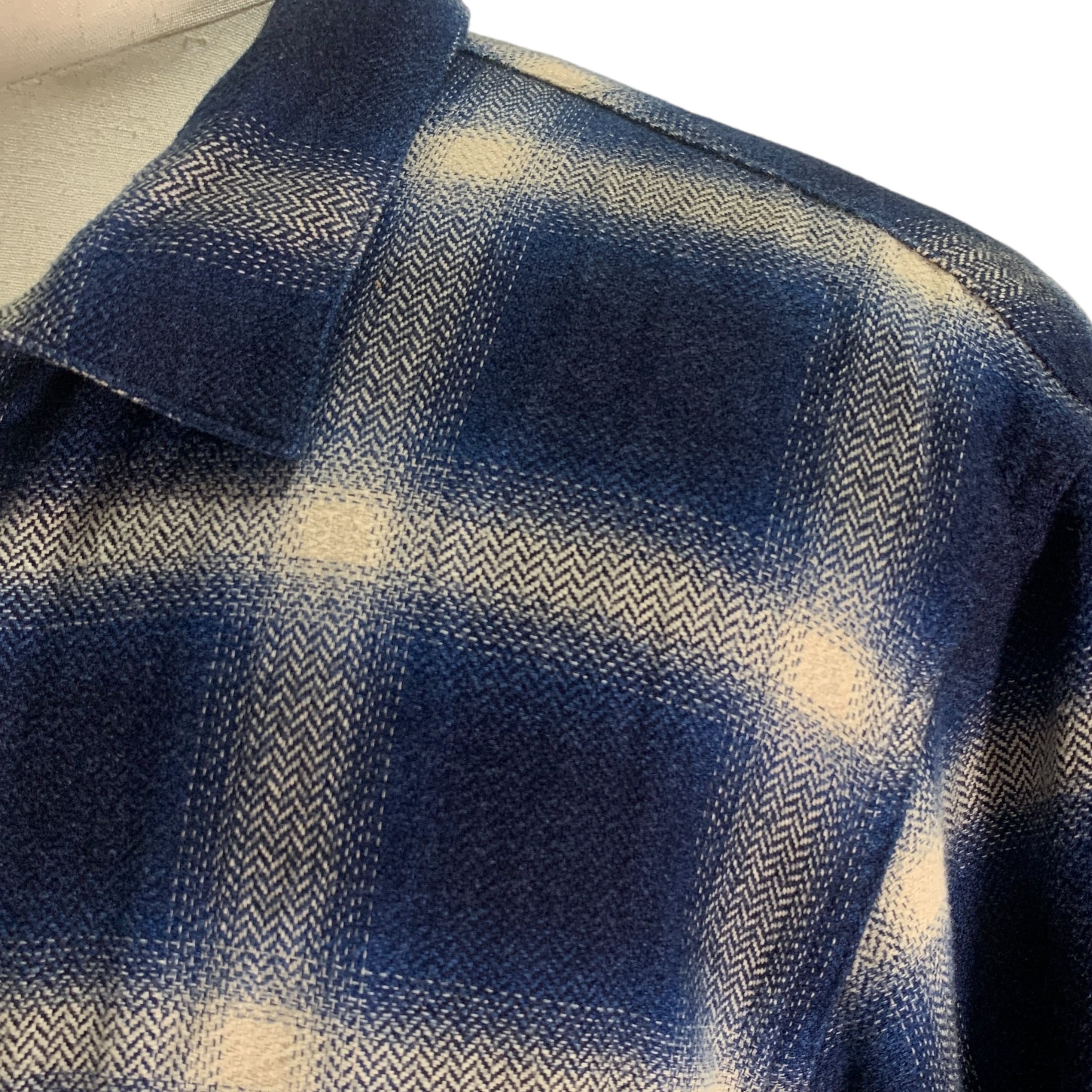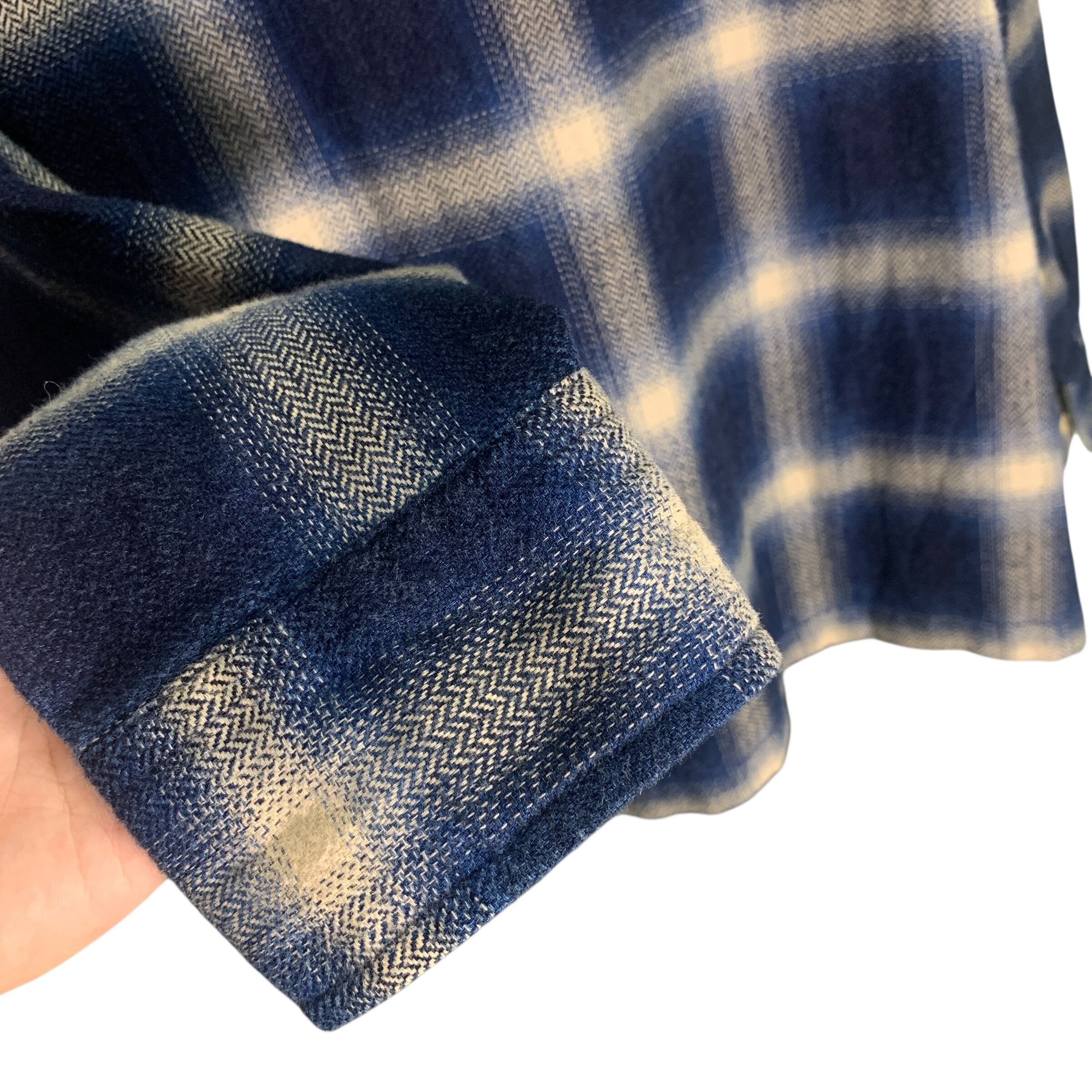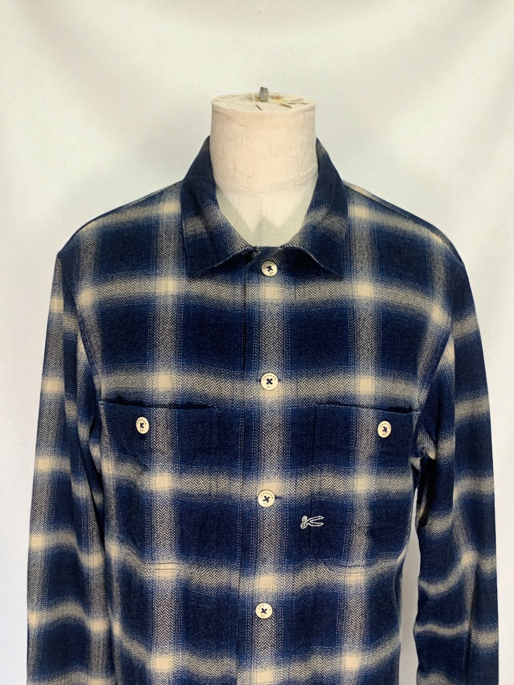 "Denham" Herringbone Block Check Shirt デザイナーズ ネルシャツ ボックスシルエット ヘリンボーン チェックシャツ ブルー ミリタリー 立体 素材感