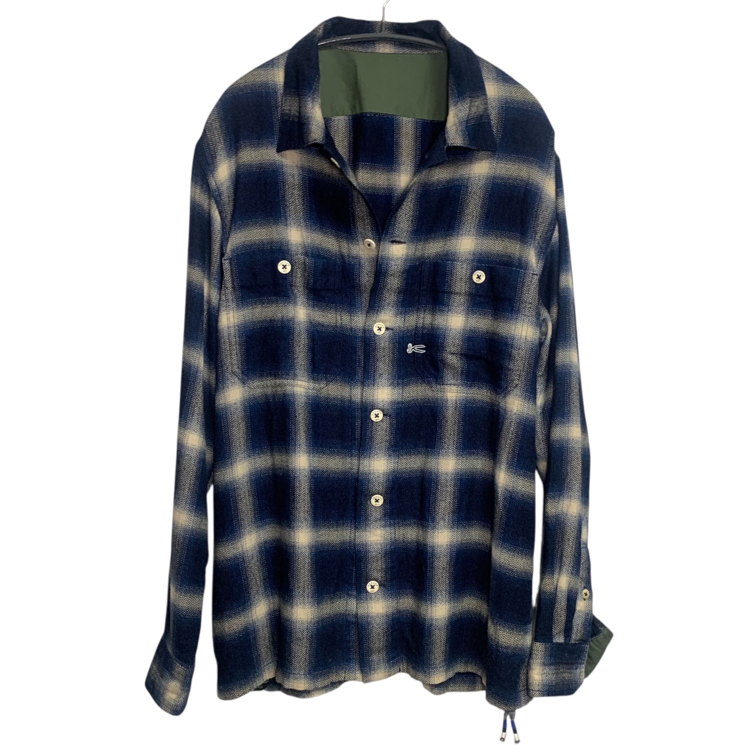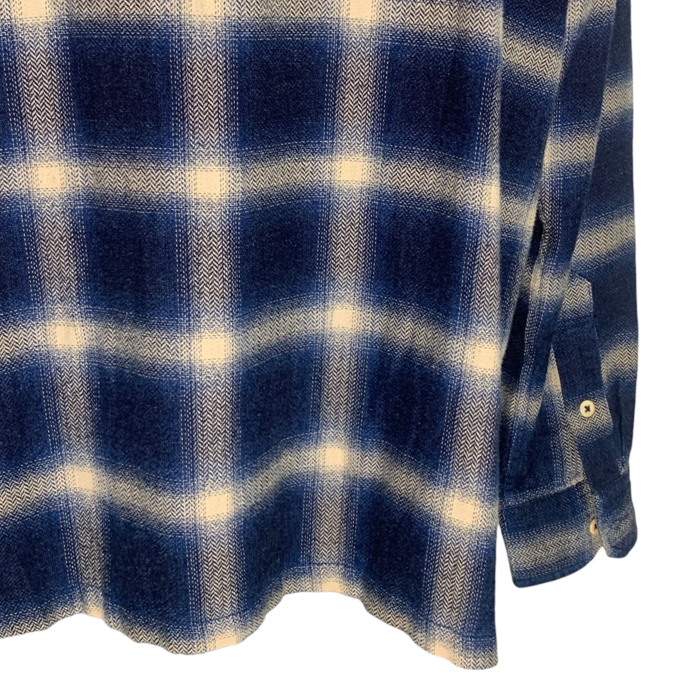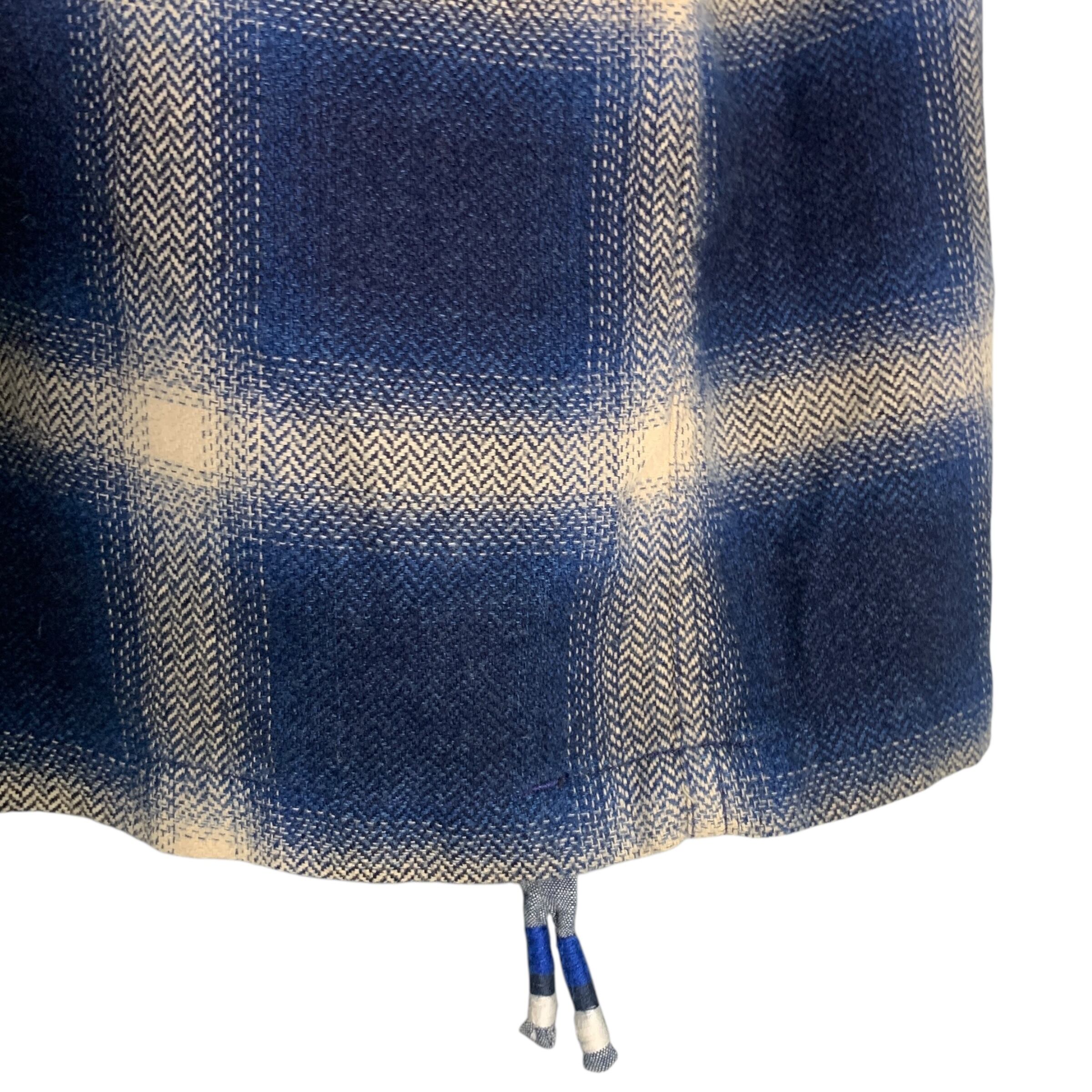 "Denham" Herringbone Block Check Shirt デザイナーズ ネルシャツ ボックスシルエット ヘリンボーン チェックシャツ ブルー ミリタリー 立体 素材感