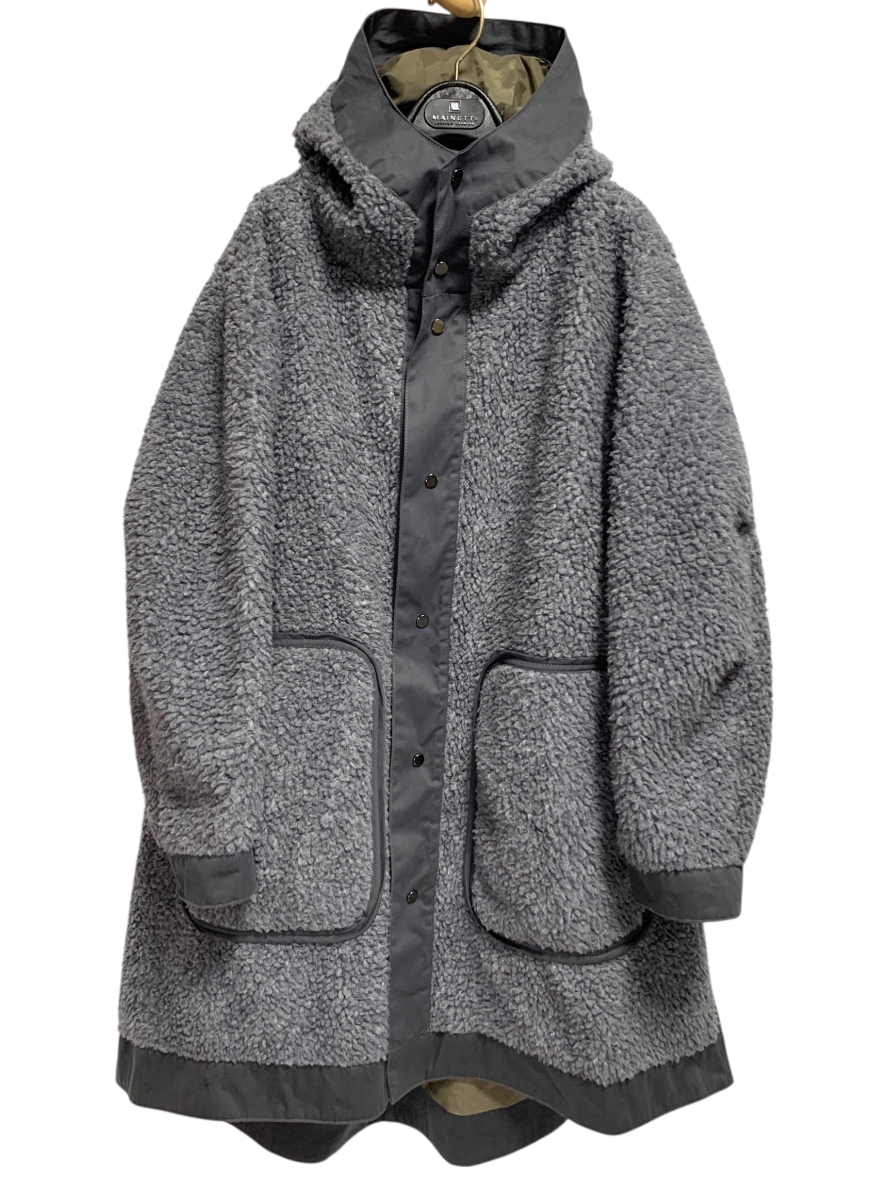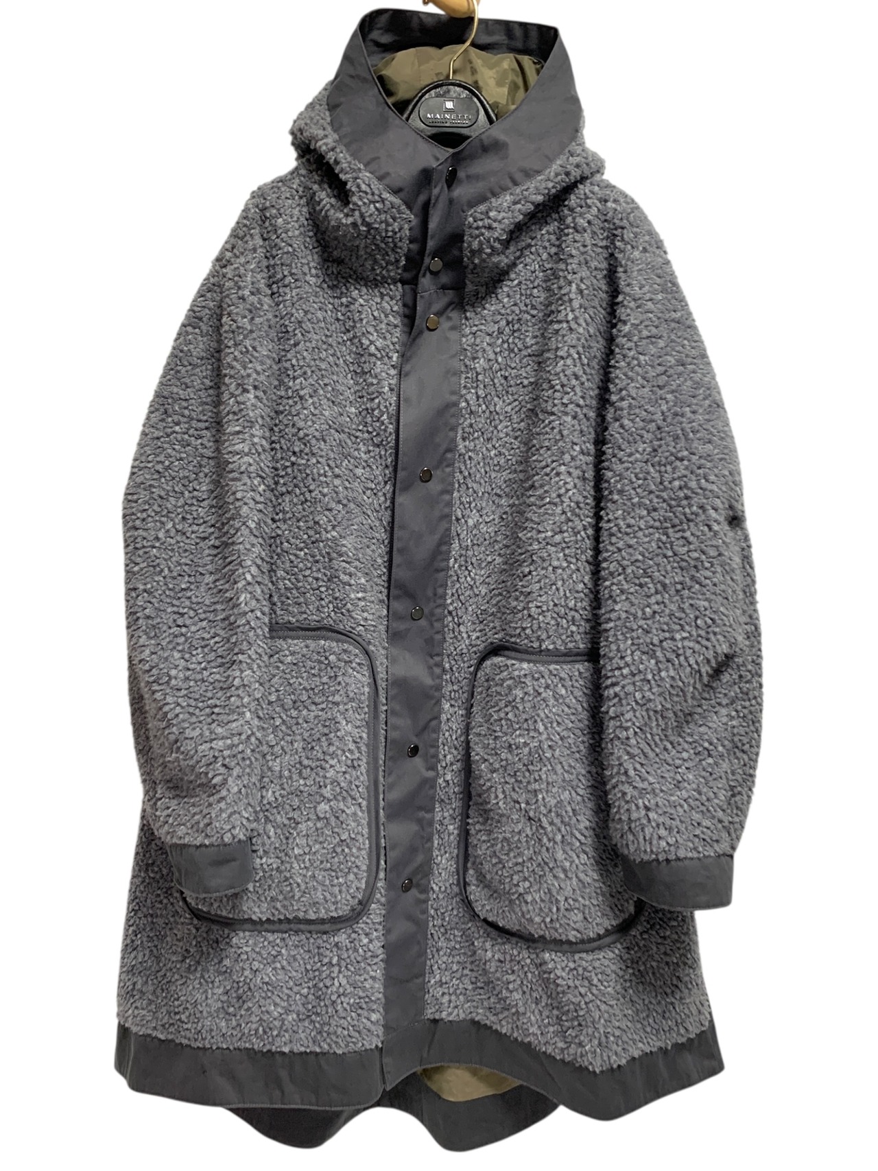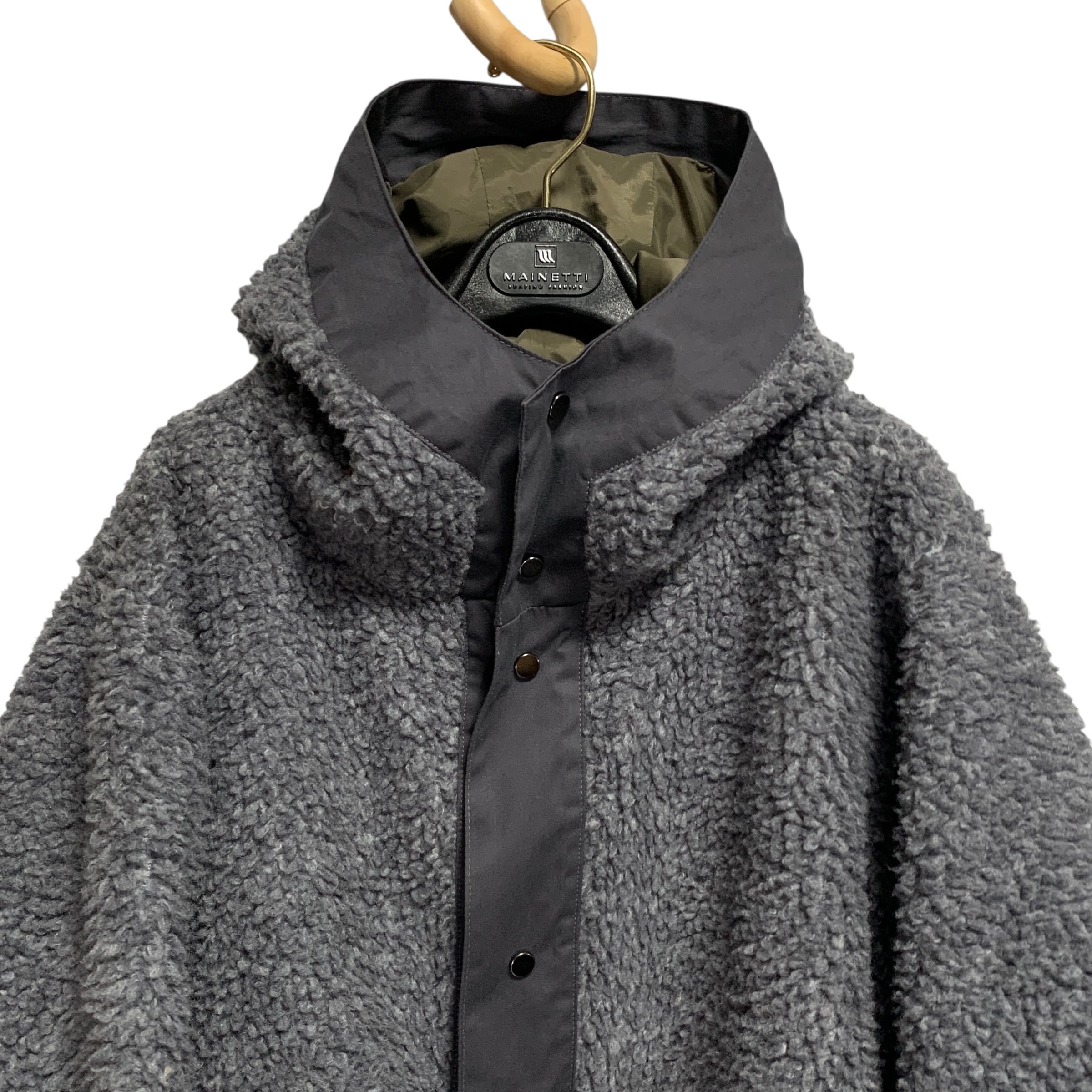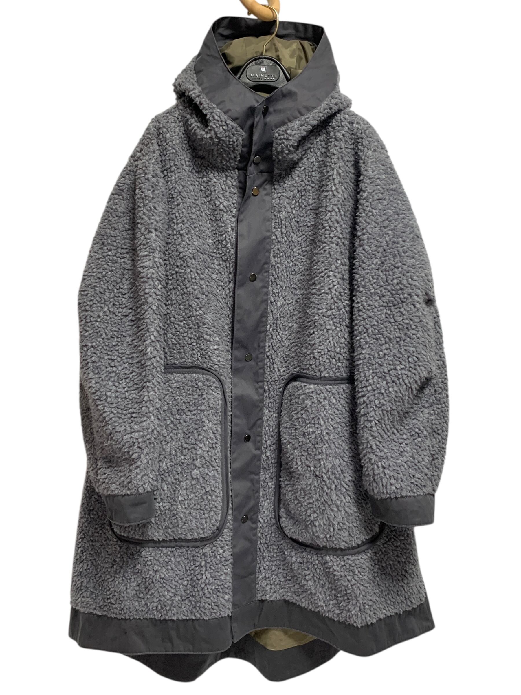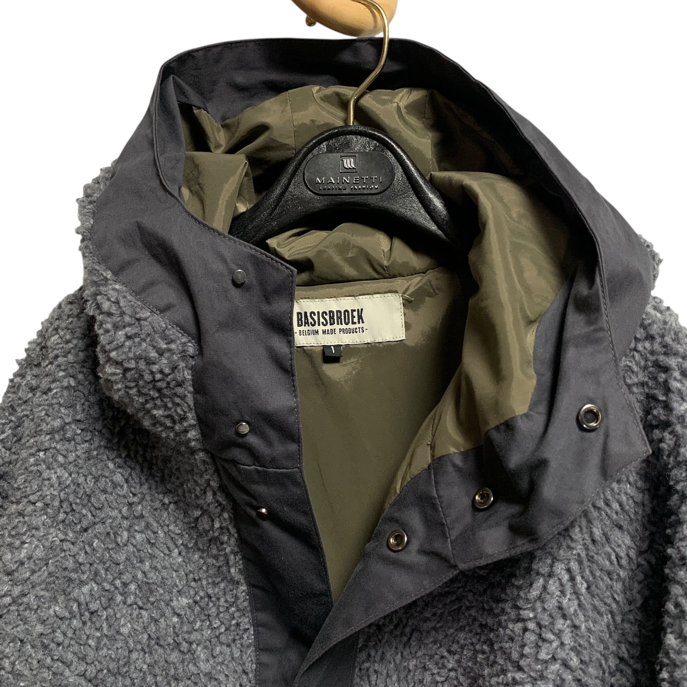 "Basisbroek" Oversized Hooded Sherpa Coat オーバーサイズコート フード付き マキシ丈 ボア グレー/グリーン ファクトリーブランド ベルギー製