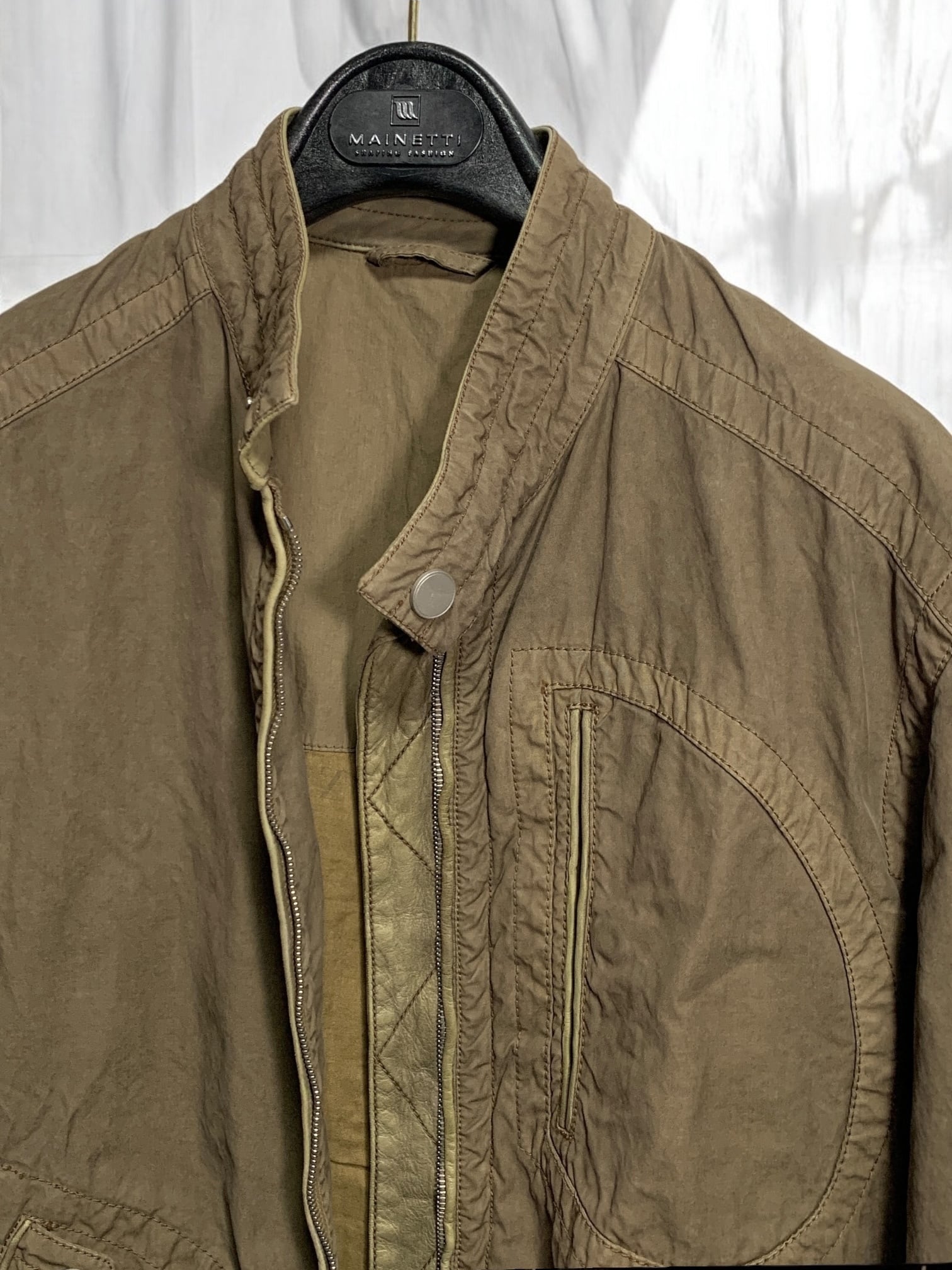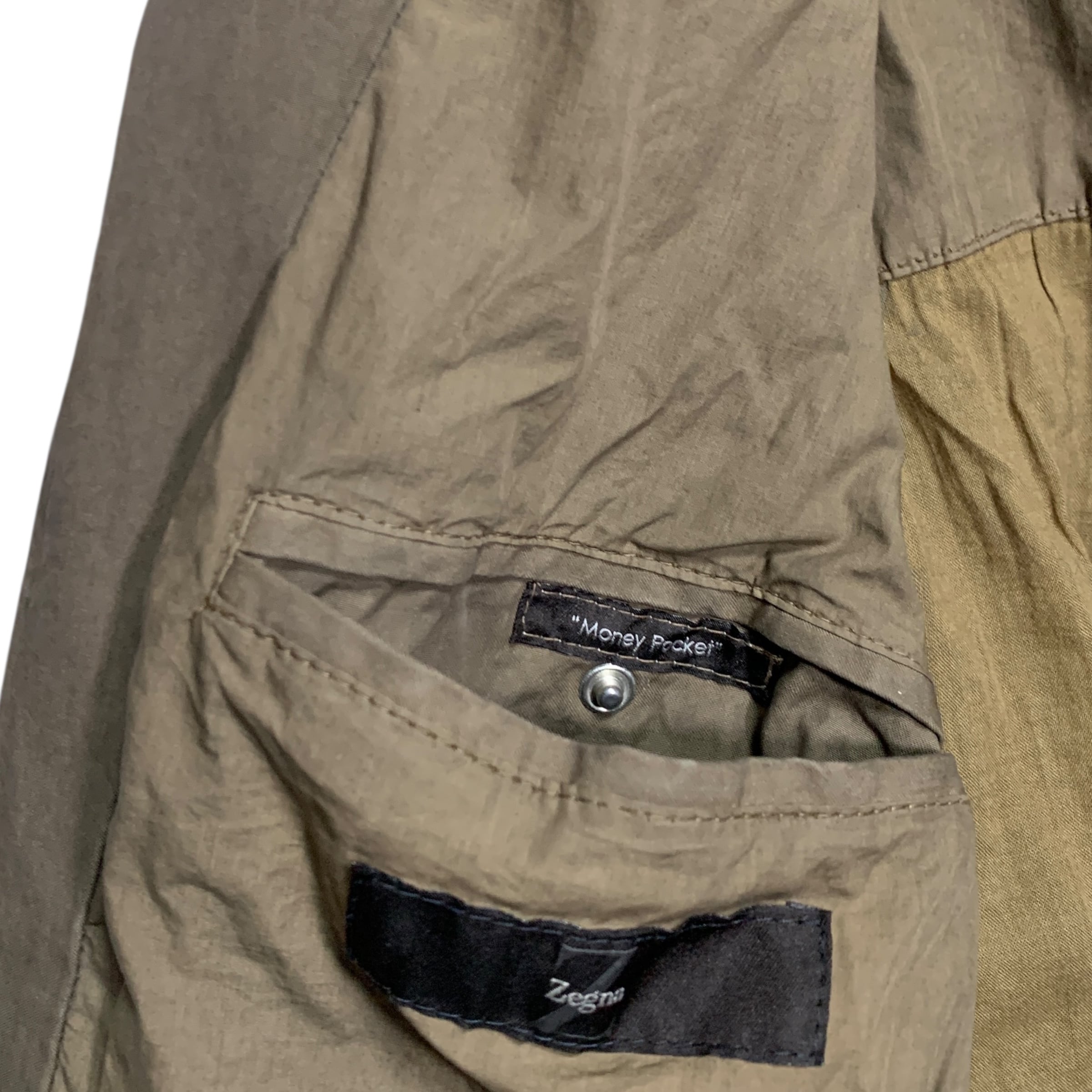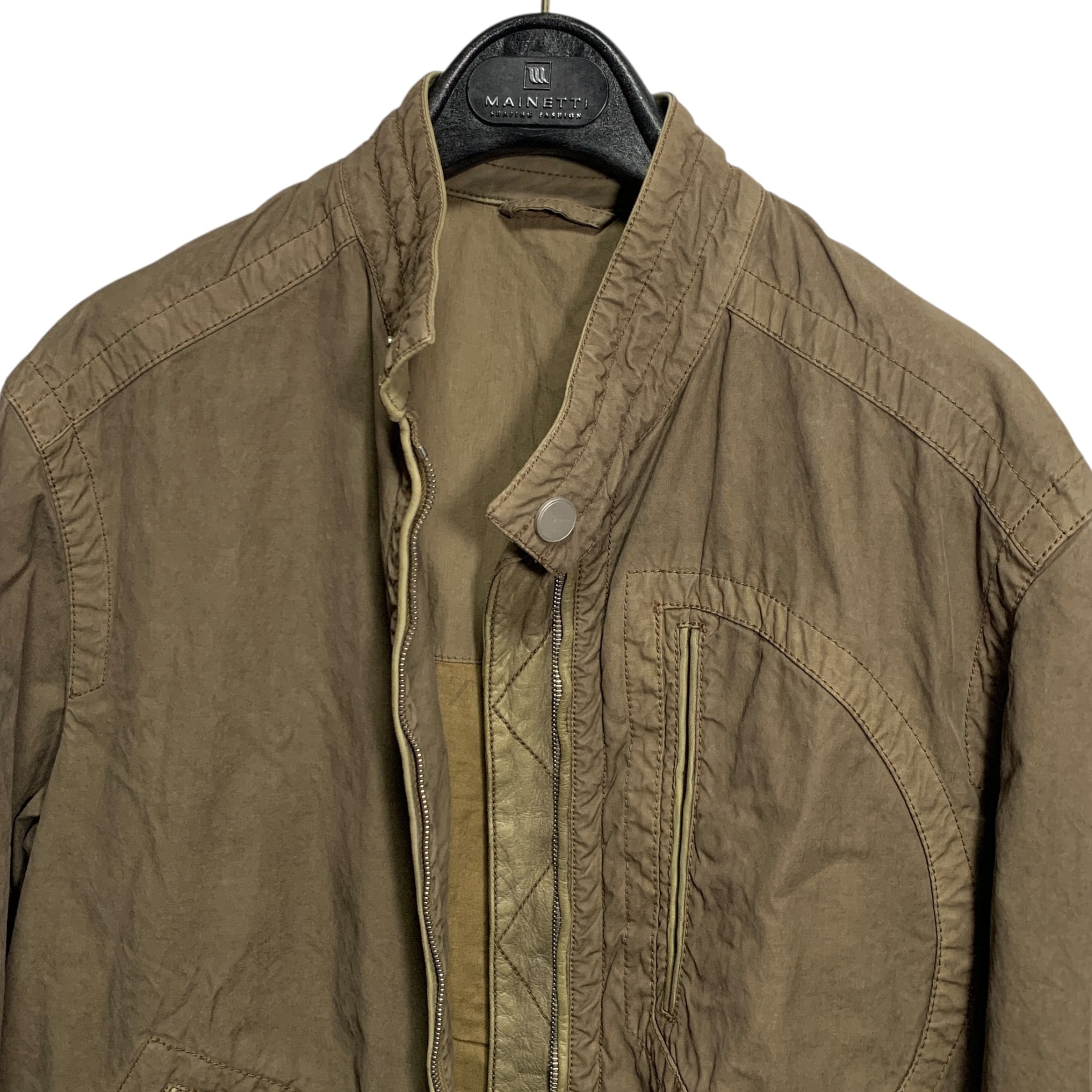 "Zegna" Military Leather Jacket レザー ミリタリー メタル ダブルジップ サイドゴム カーキ デザイナーズ