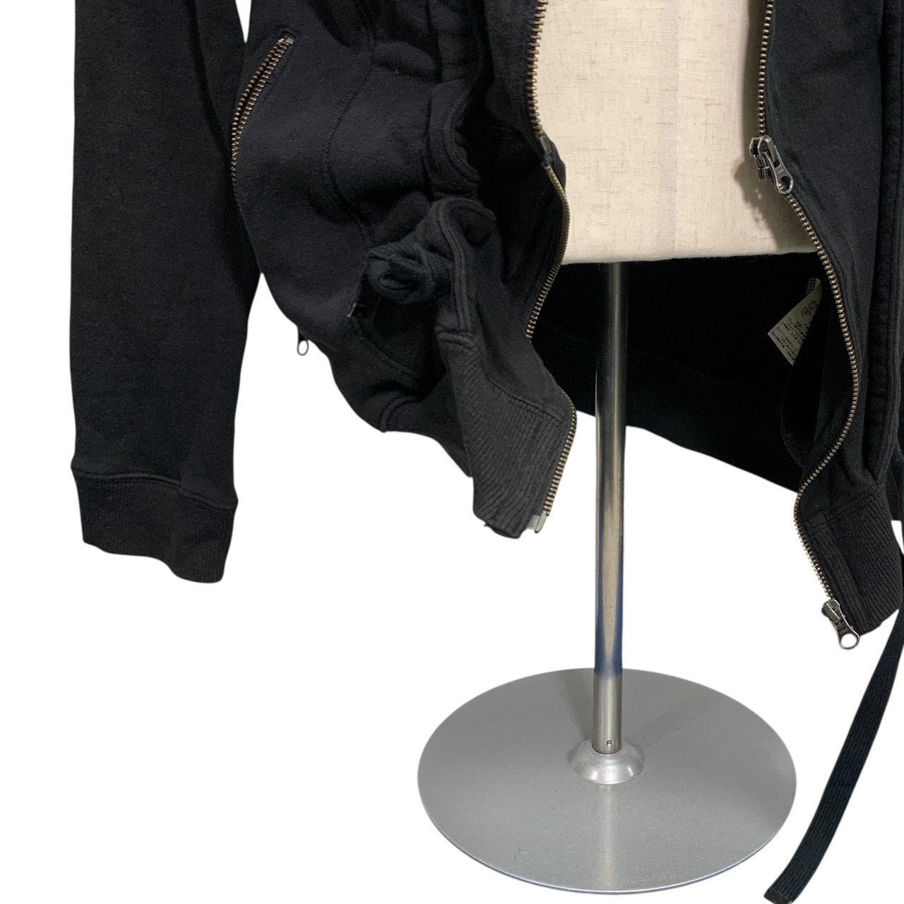 特徴的なジップアップフーディ。