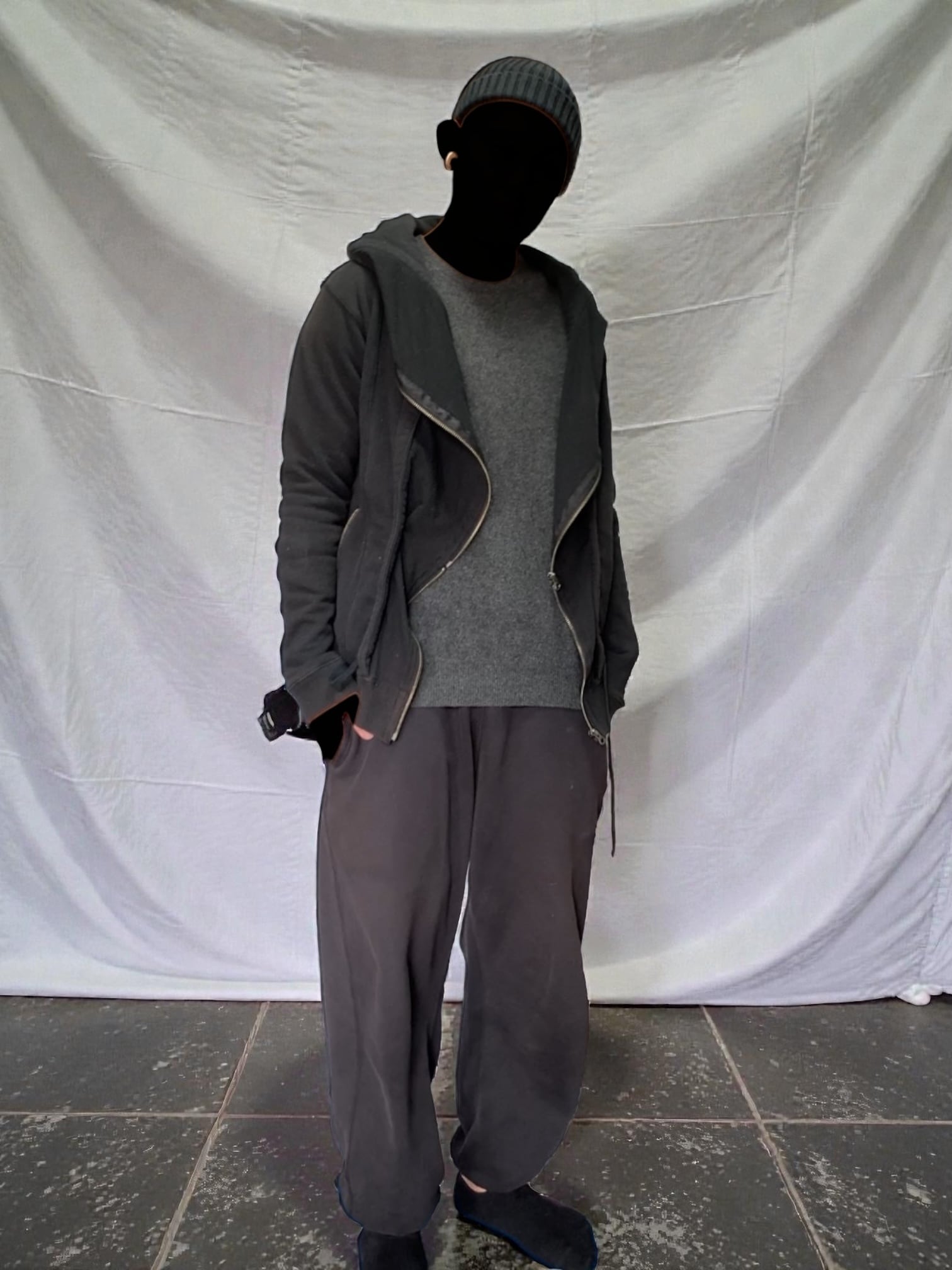 "Okiraku" Asymmetric Dual-Zip Hooded Jacket 変則2連ジップ フーディー アシンメトリー アウター デザイナーズ 日本製