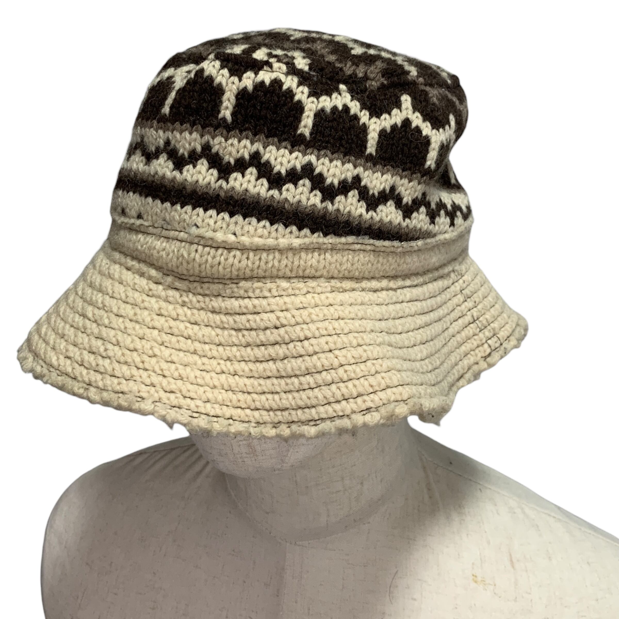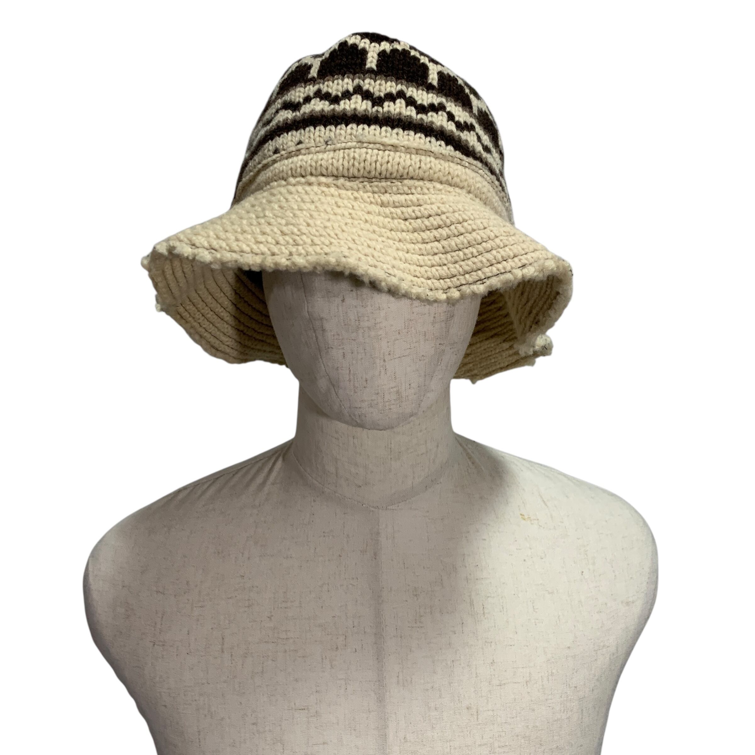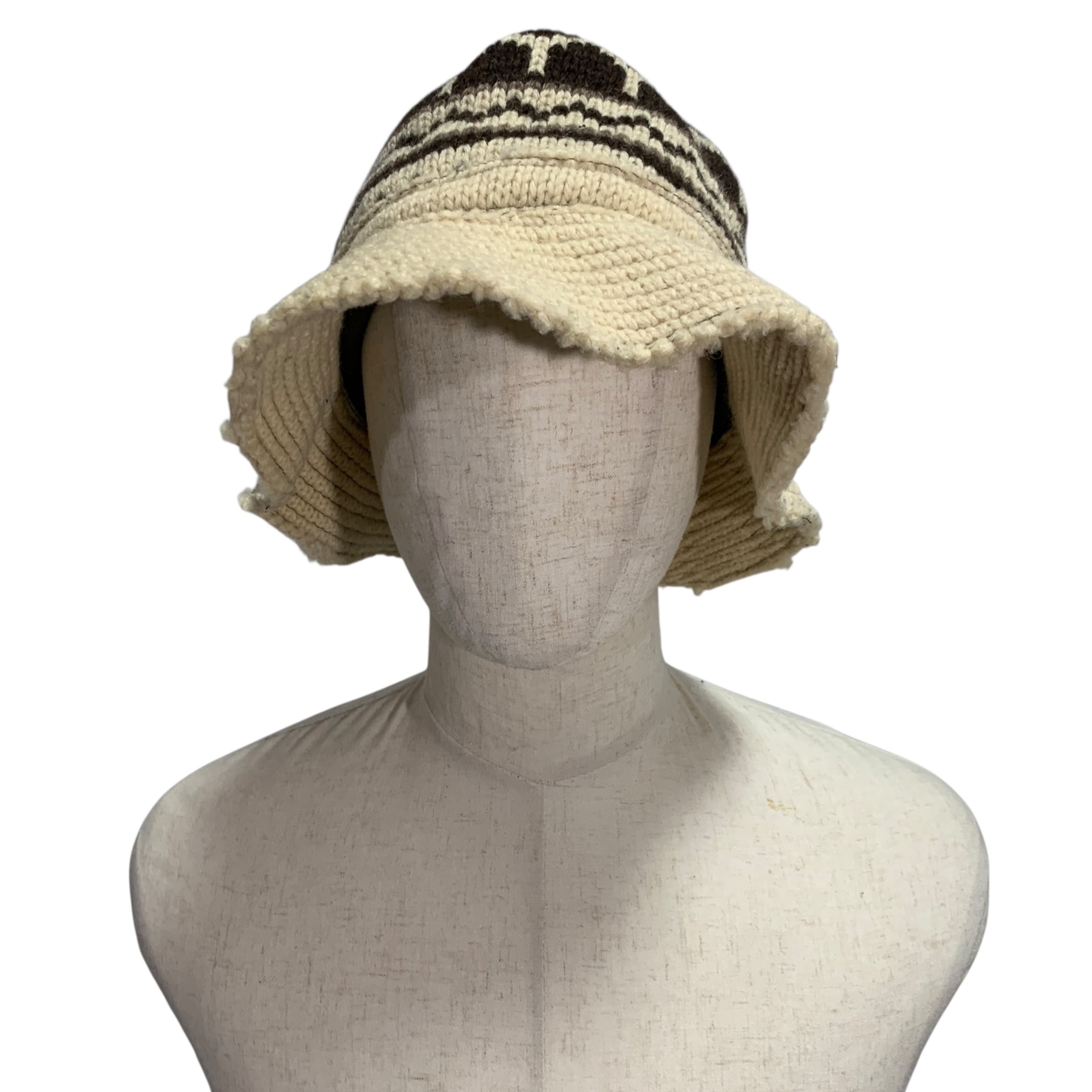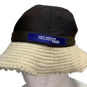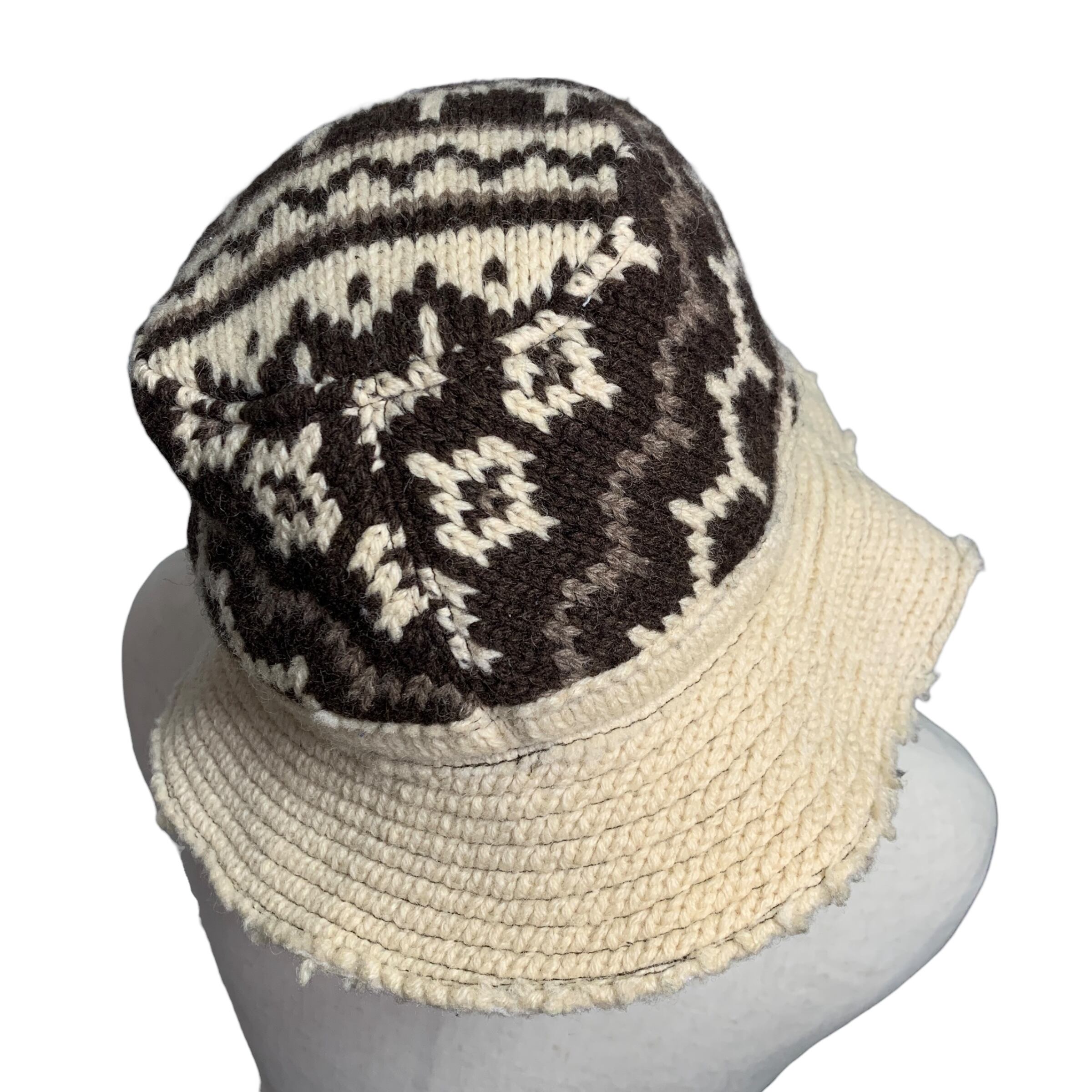 "Junya Watanabe Man" Fair Isle Bucket Hat (Wool) ジュンヤワタナベ コムデギャルソン デザイナーズ バケハ フェアファイル柄 ノルディック 再構築 編み込み 白 ウール カットオフ