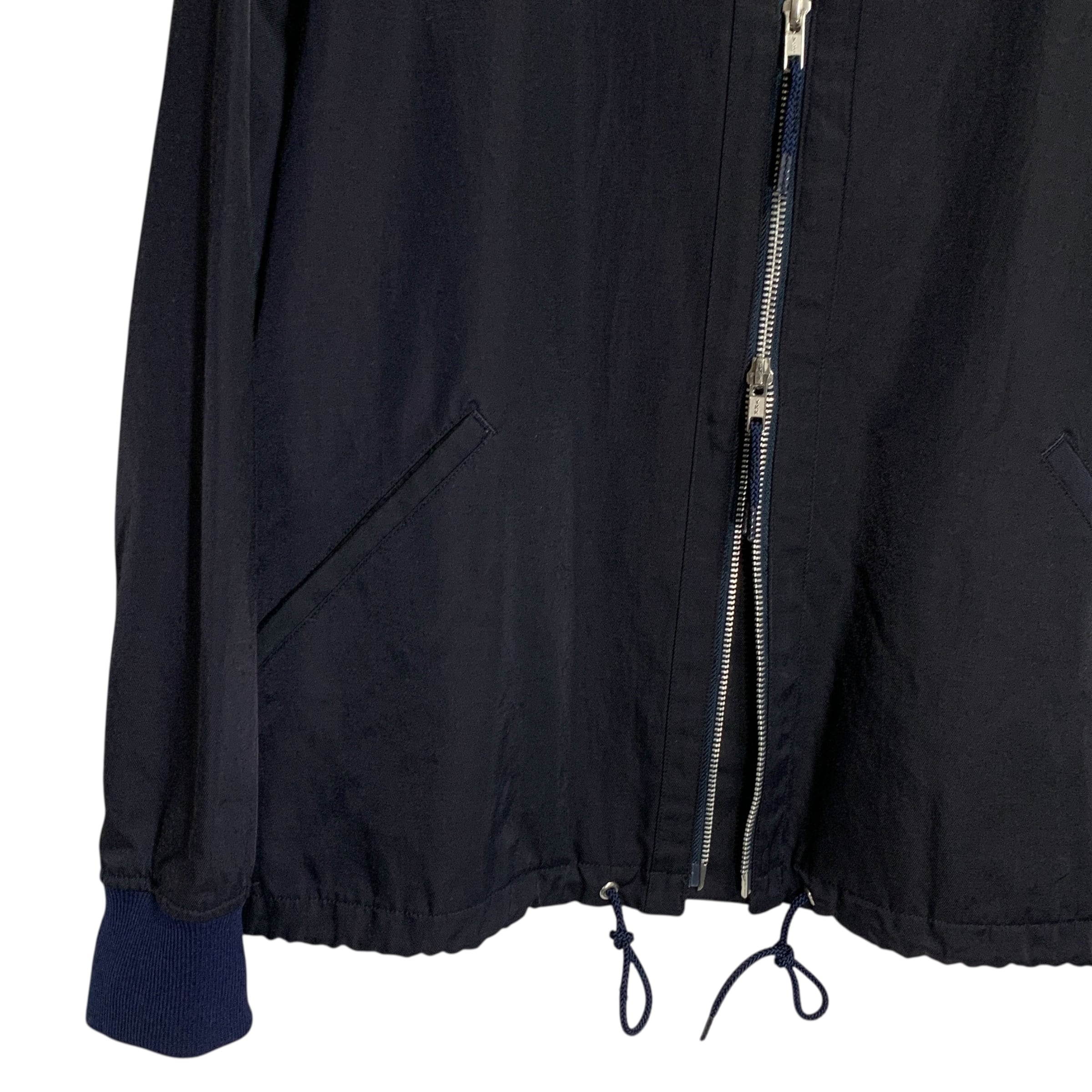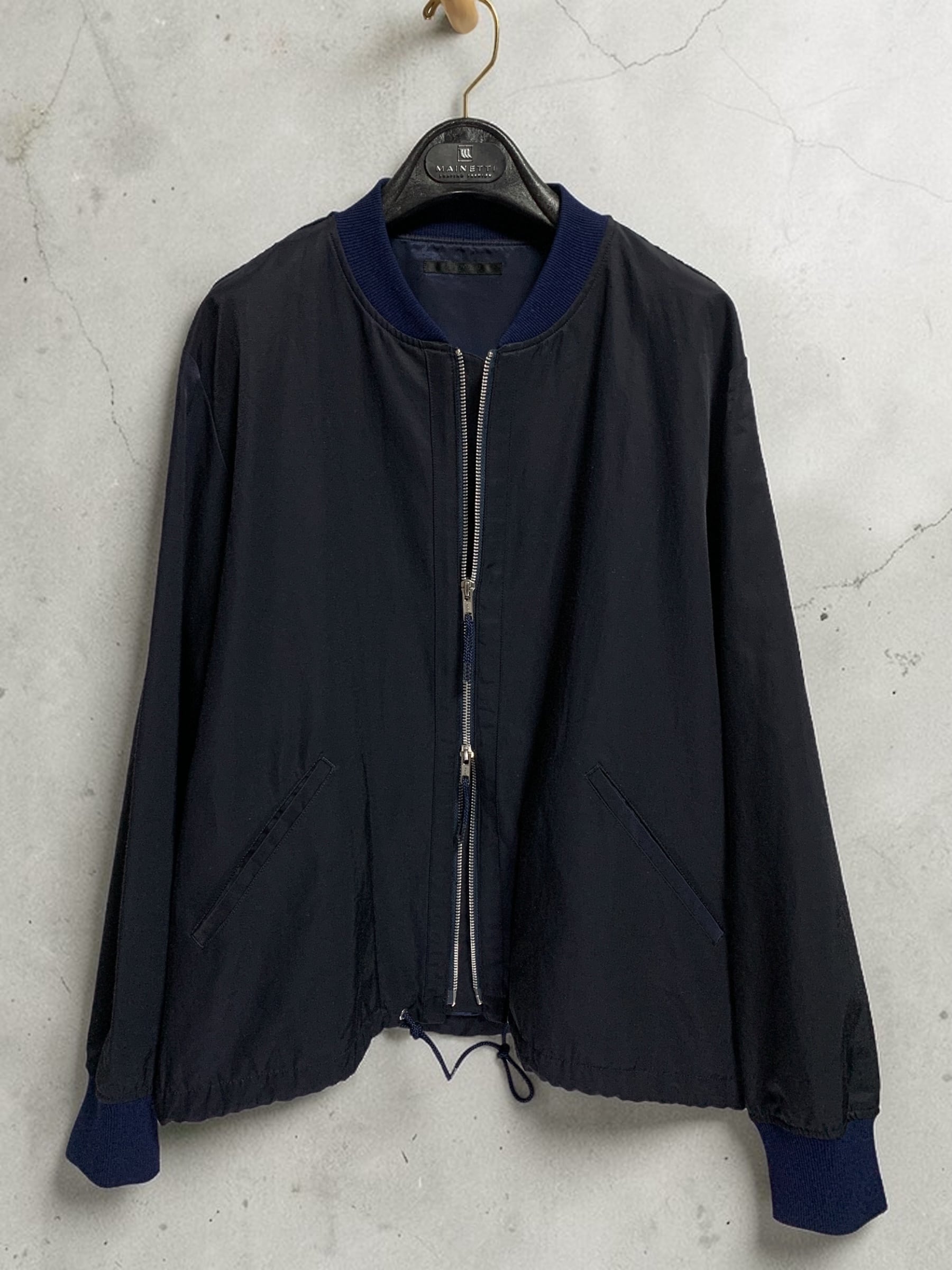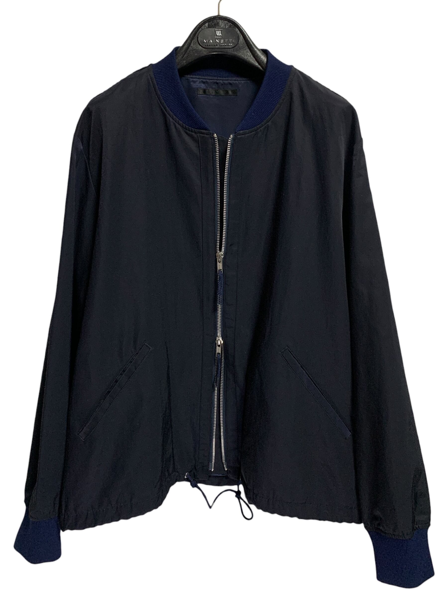 "Discovered" Back Panel Bomber-Style Jacket / Navy ドメブラ ダブルジップ ニット切替 春先 ライトアウター ネイビー 日本製