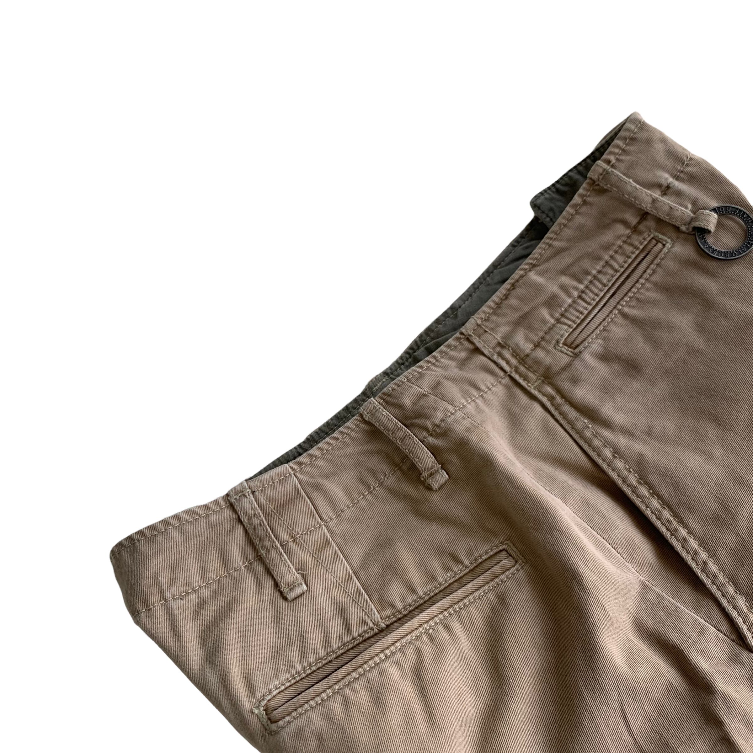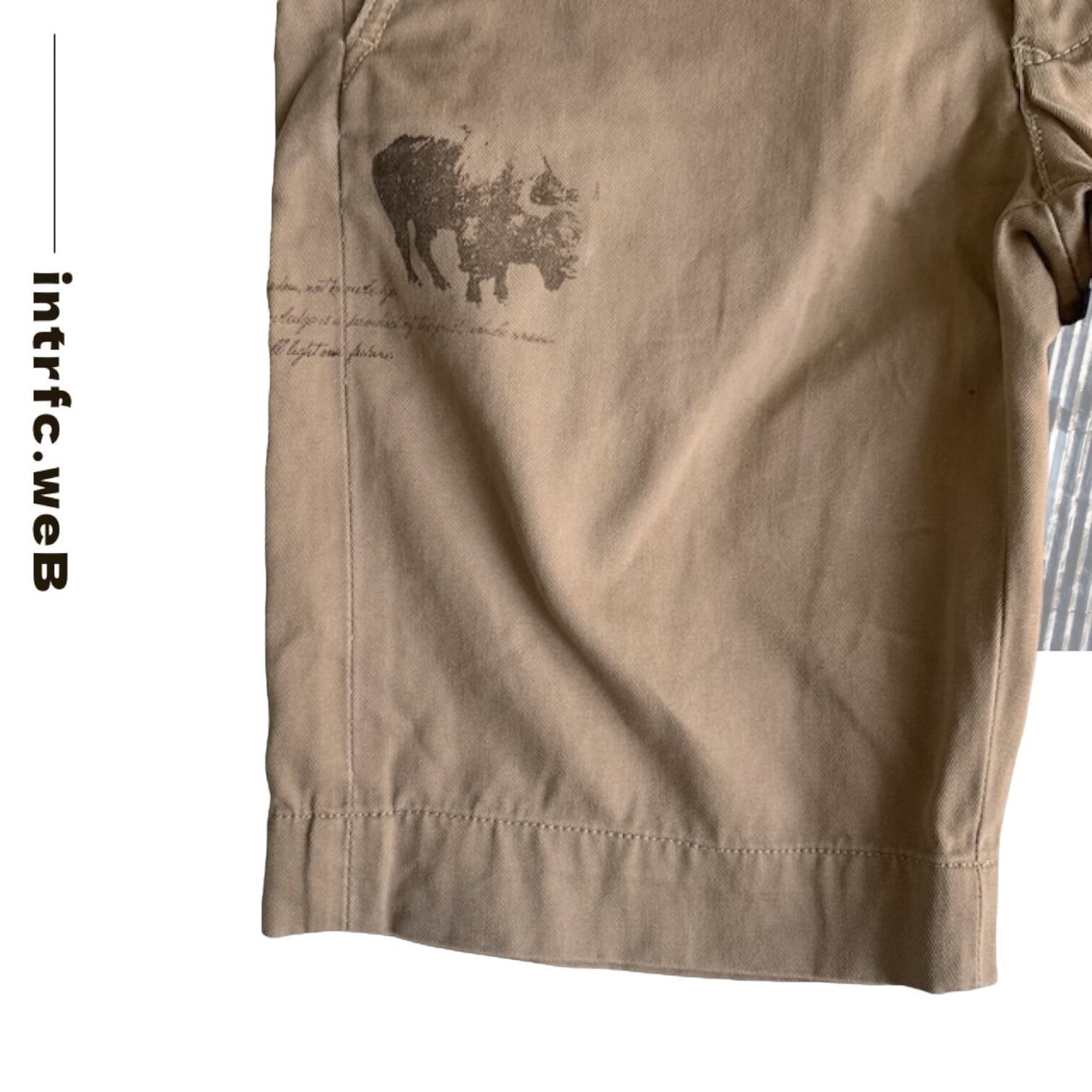 パンチのあるべージュのハーフパンツを
