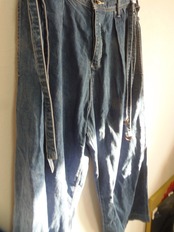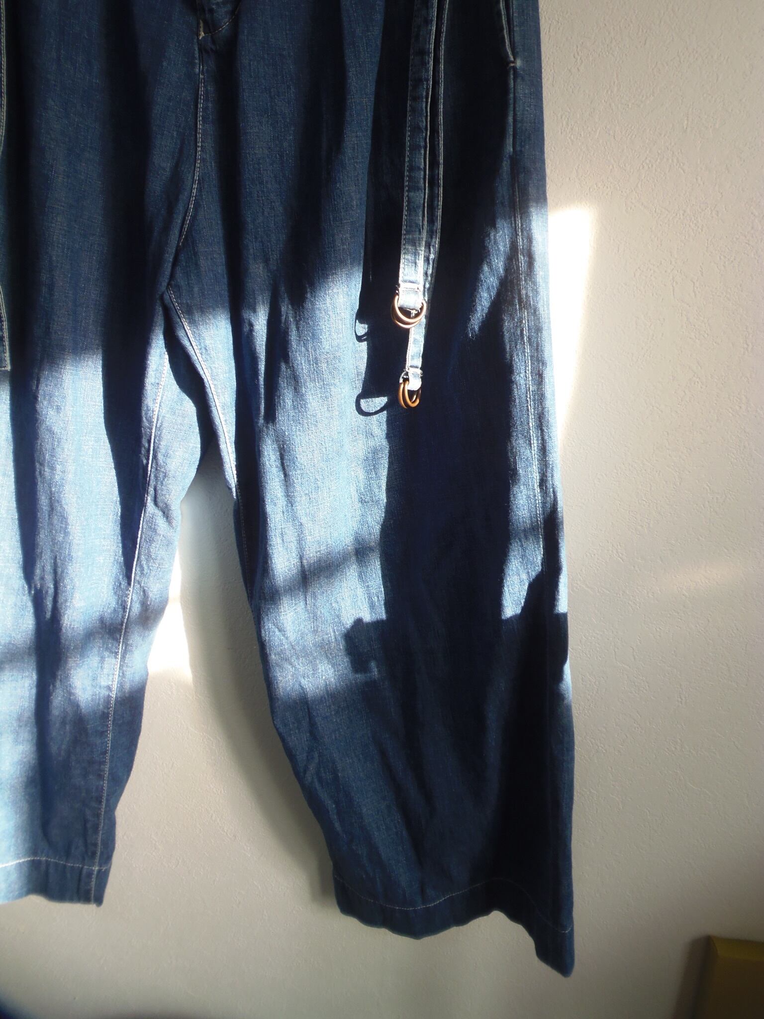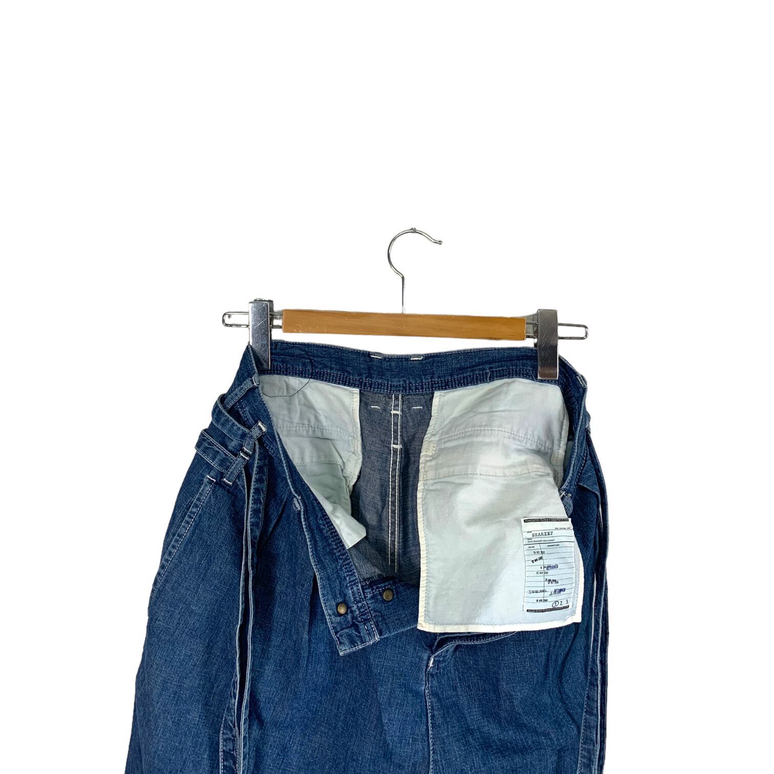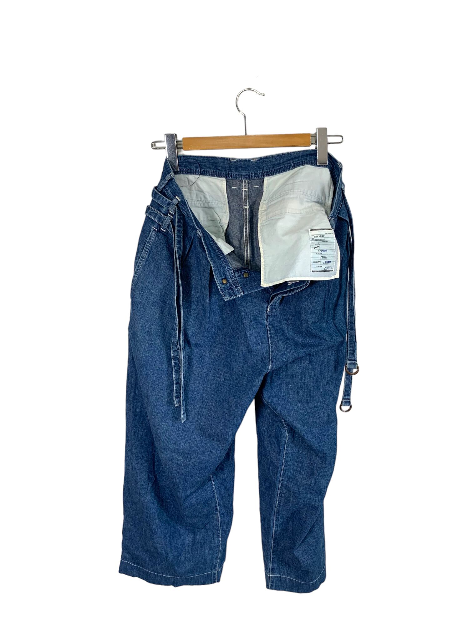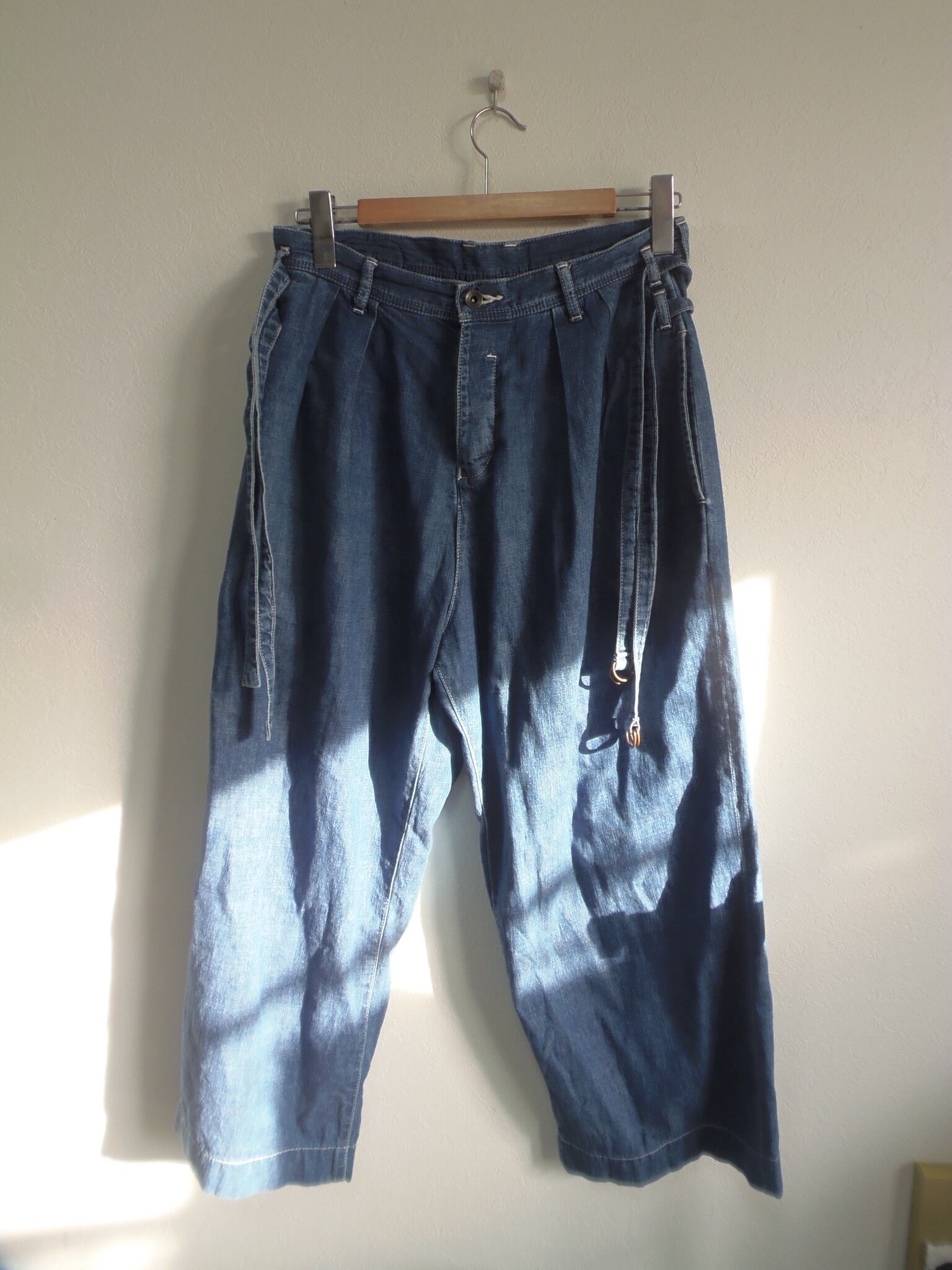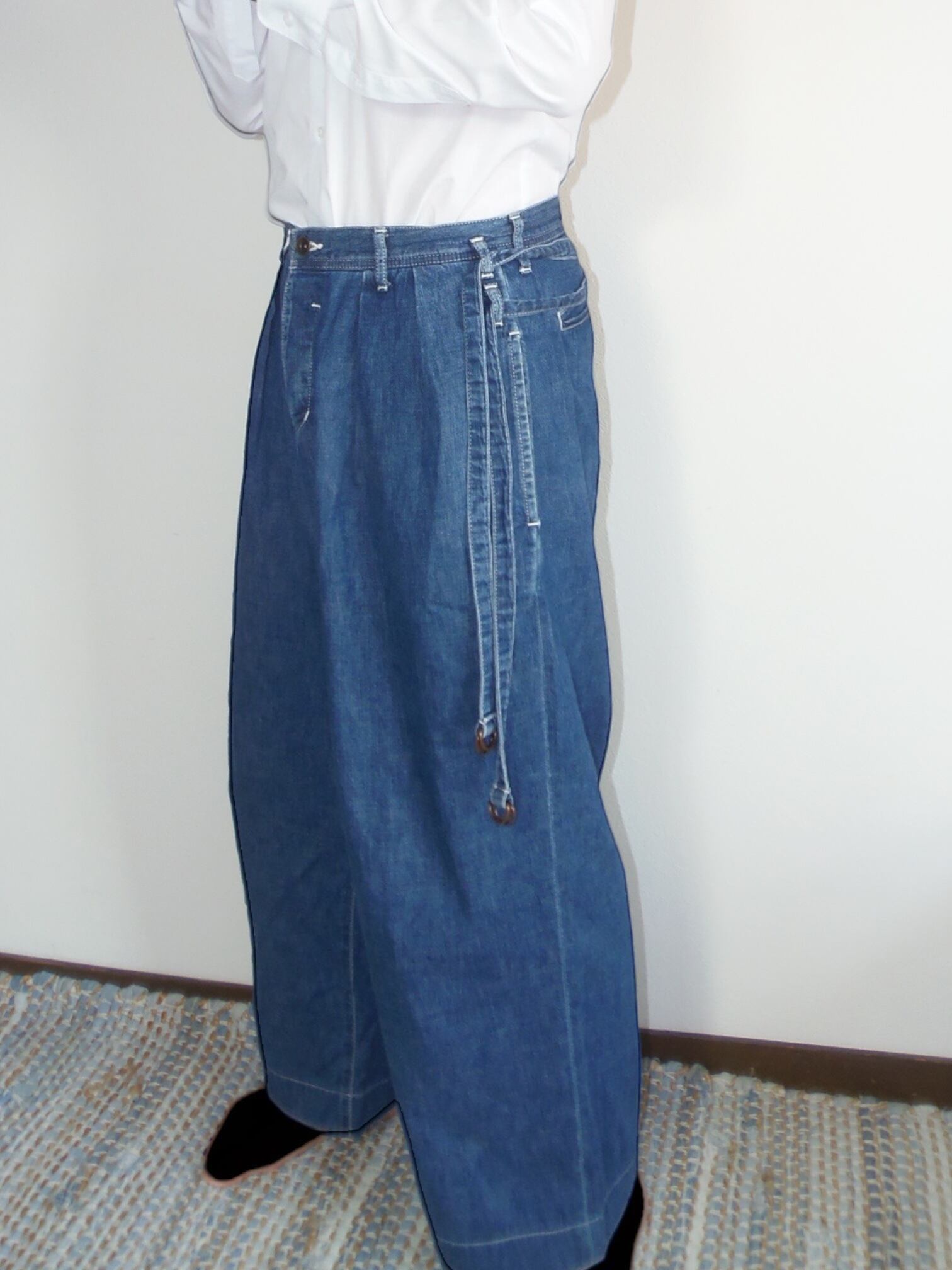 "Shareef" Twin belt denim デザイナーズ ワイドデニム ワイドパンツ ブルー