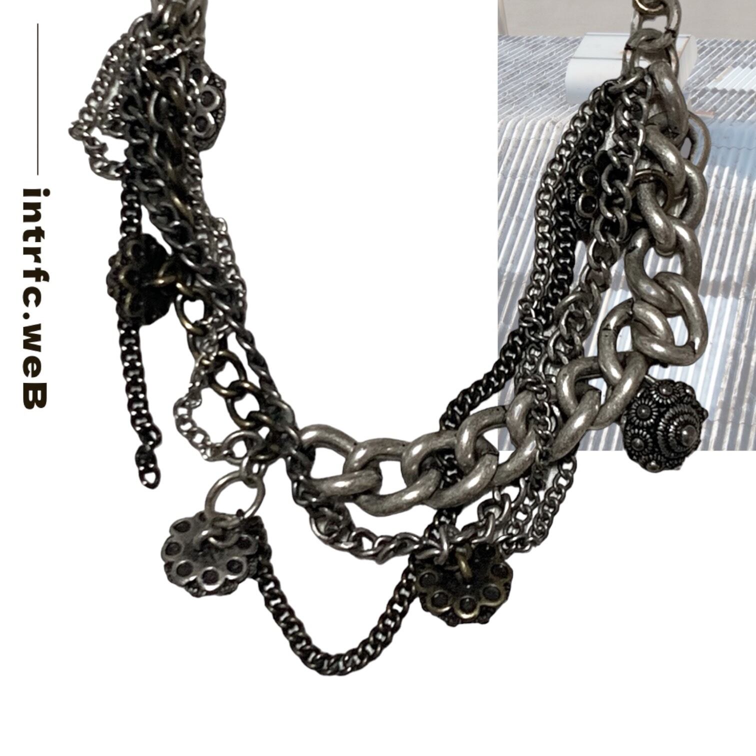 "Unknown" Multi-chain braceletは6つの異なるパーツで構成されたユニークなブレスレットです。バラエティ豊かなデザインは、身につけ方によって全く違った印象を演出することができます。