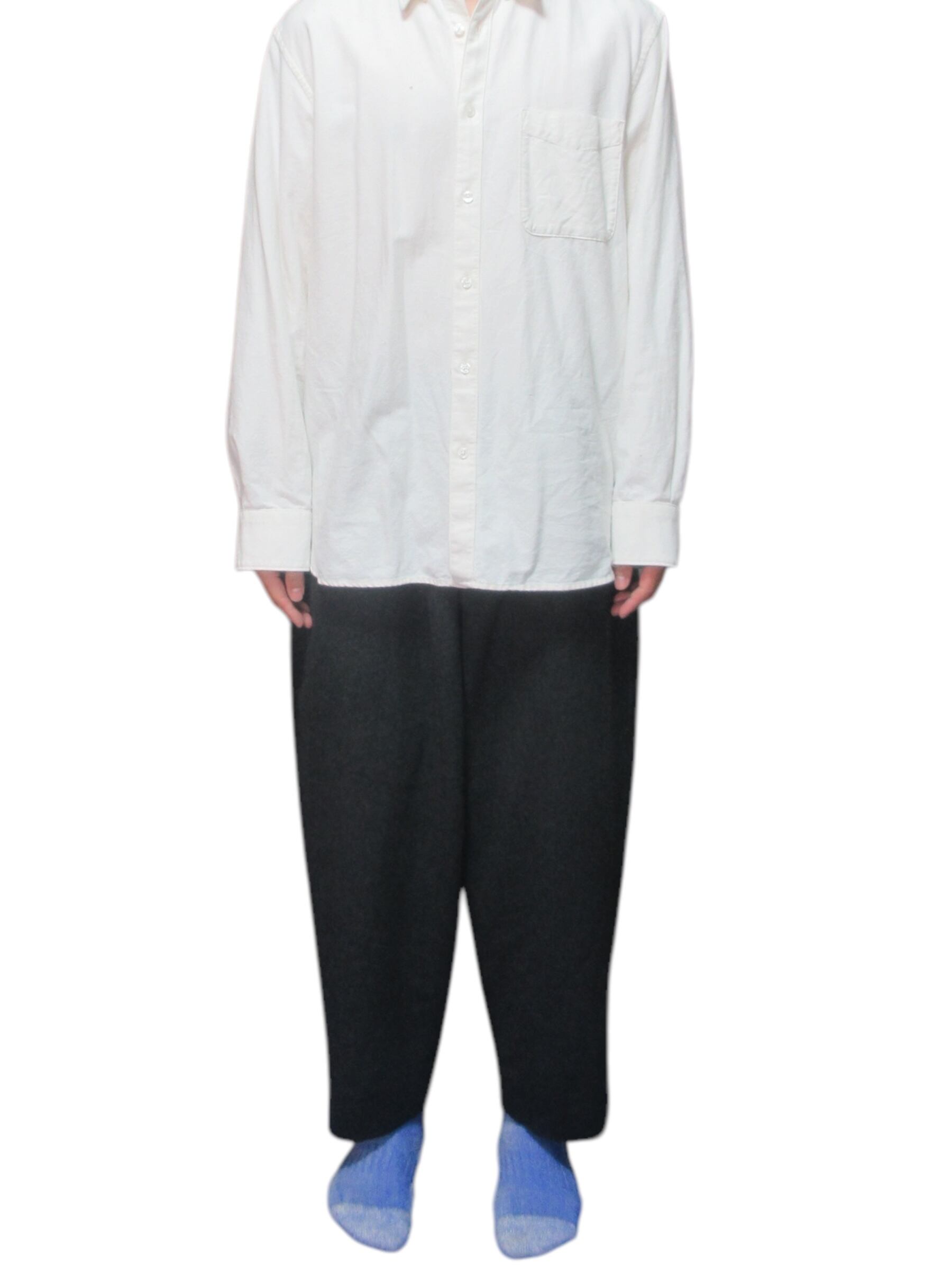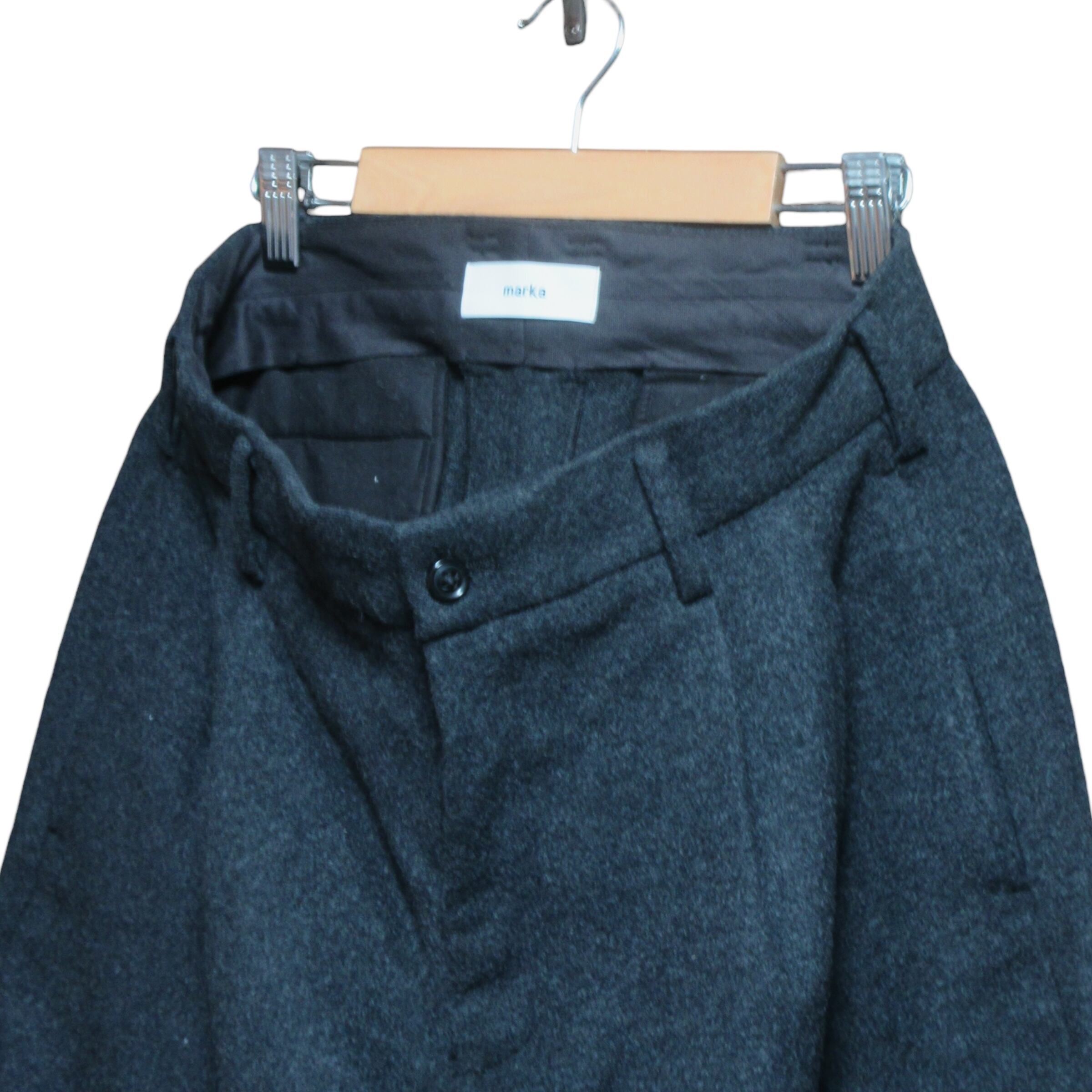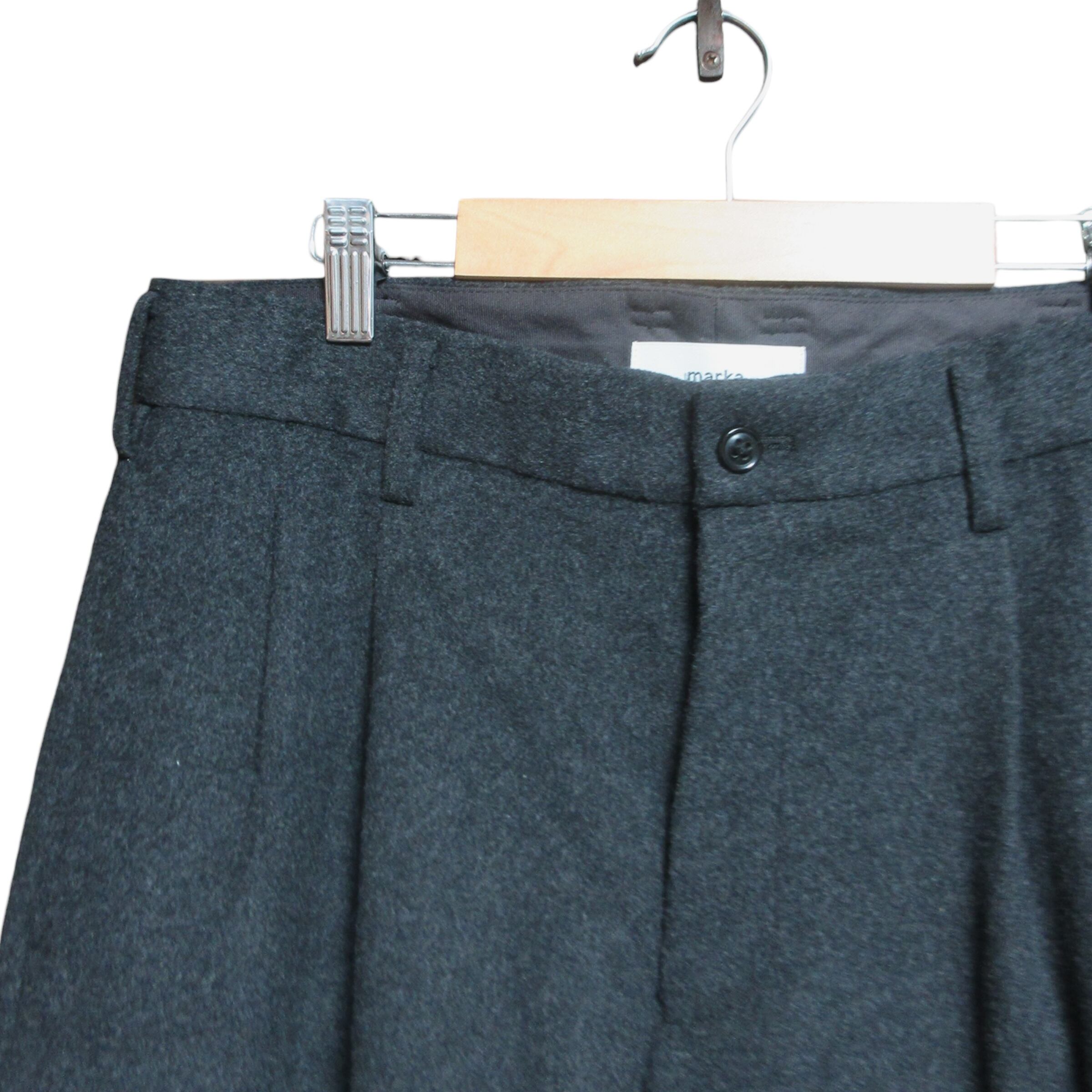タック入りでお尻まわりに余裕を持たせた9分丈ぐらいのパンツ。
